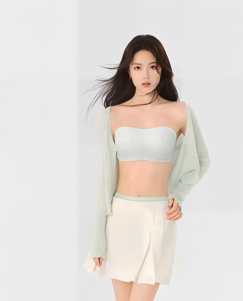 但你多看几秒,就能品出点门道。 那吊带的V领设计,恰好露出清晰的锁骨和脖颈线条,贴合却不紧绷,把少女那种还没完全长开、带着点青涩和纤薄的轮廓,勾勒得明明白白。 没有汹涌的曲线,但那种流畅的、盈盈一握的线条感,反而特别抓人。