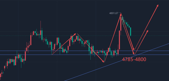 建议黄金回踩下方4785-4800可轻仓试多,止损:4750,目标:4890-4950,如果后续金价若破4950美元并站稳,可顺势加仓,上看5000美元。如果要做空的话,建议黄金反弹至4900-4920轻仓试空,止损:4950,目标:4830-4785;(策略建议仅供参考,盈亏自负,做单严格做好风控,设置止损和目标位置,杜绝扛单)