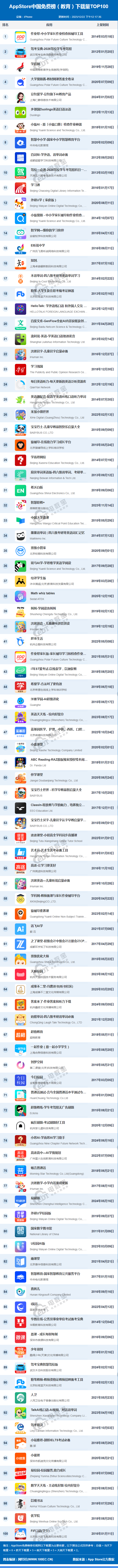 此外,落榜30名后的APP有:希沃白板、智慧职教、中国大学MOOC(慕课)、墨墨背单词、班级小管家、斑马AI学、综评学生版、Math whiz tables、叫叫、洪恩拼音、胖乖生活、作业帮家长版、iTEST爱考试、希望学、洋葱学园、英语天天练、蓝基因、小盒课堂、ABC reading、伴学课堂、宝宝巴士世界、Classln、宝宝巴士汉字、途途课堂、艺术升、高途、洪恩英语、学科网、猿辅导素养课、讯飞AI学、一起作业、华图在线、荔课等。