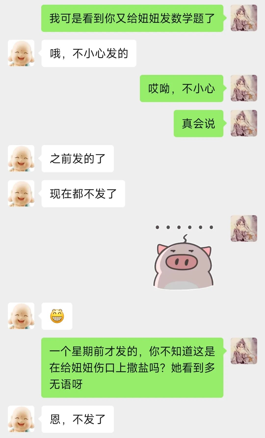 再次警告他,不要给女儿发这些了,没用,又伤感情。