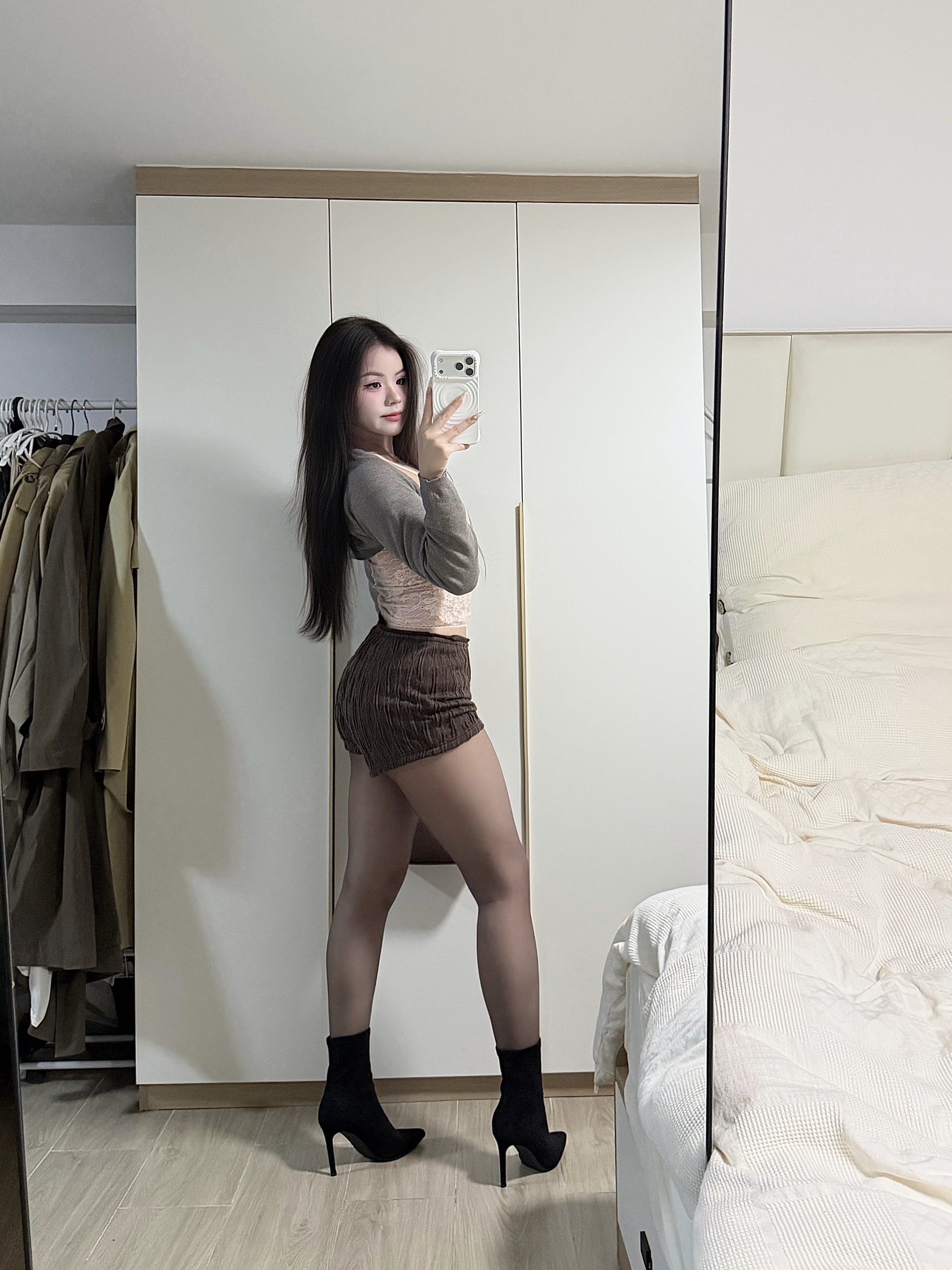 轻熟范本:棕色短裤+黑丝的优雅平衡术