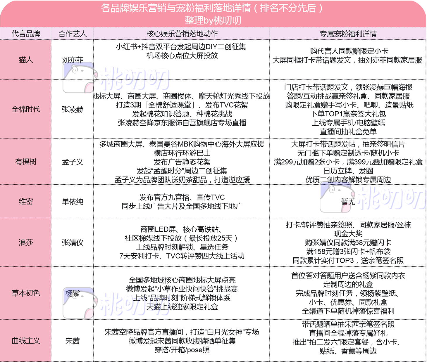 总的来说,以内衣、裤袜、家居服等贴身服饰为起点的综合性品牌,付出高昂的代言费选定艺人,必定会制定一套非常完整、有力的营销策略,让他们助力品牌的声量、形象、销量。