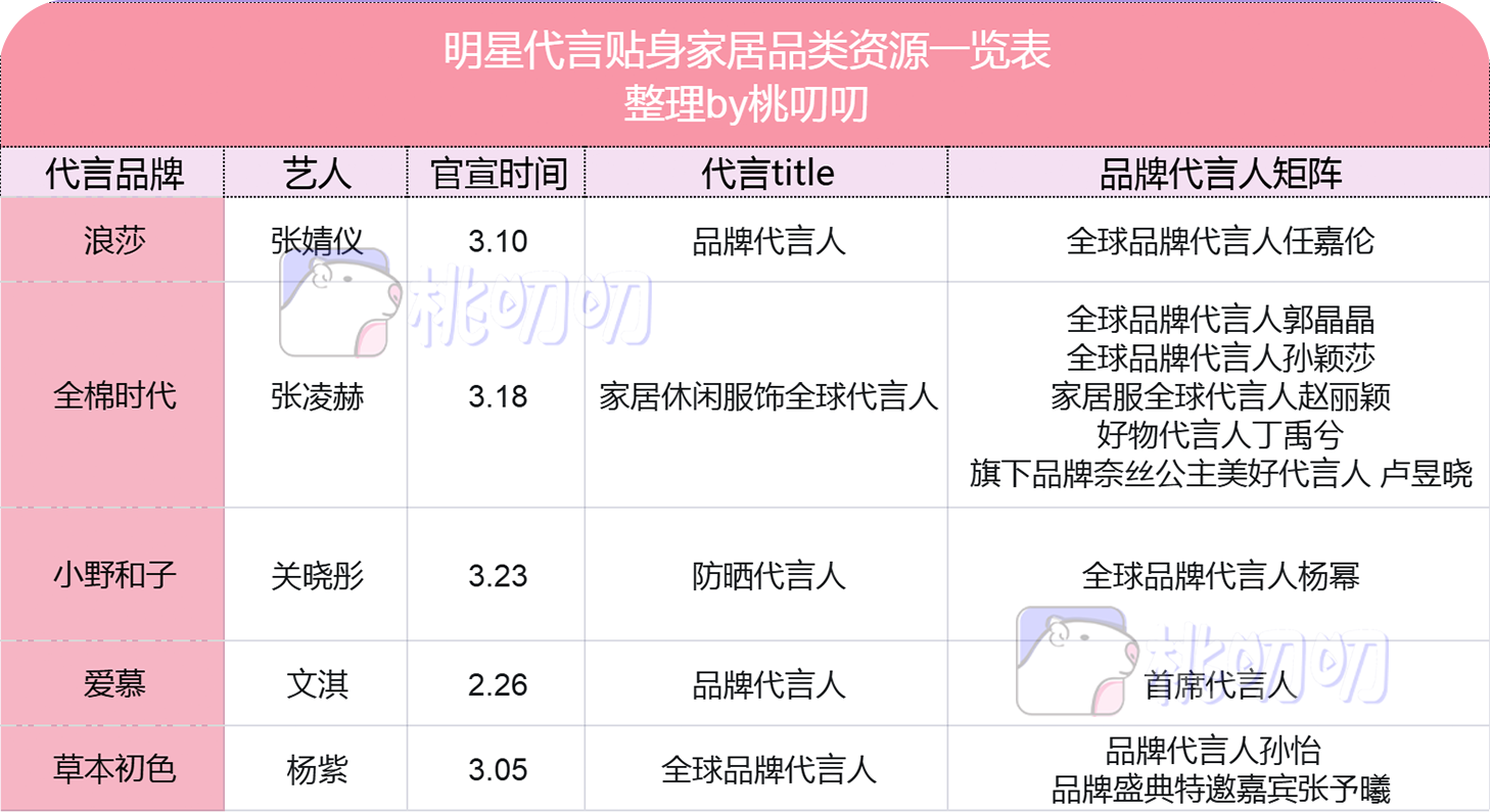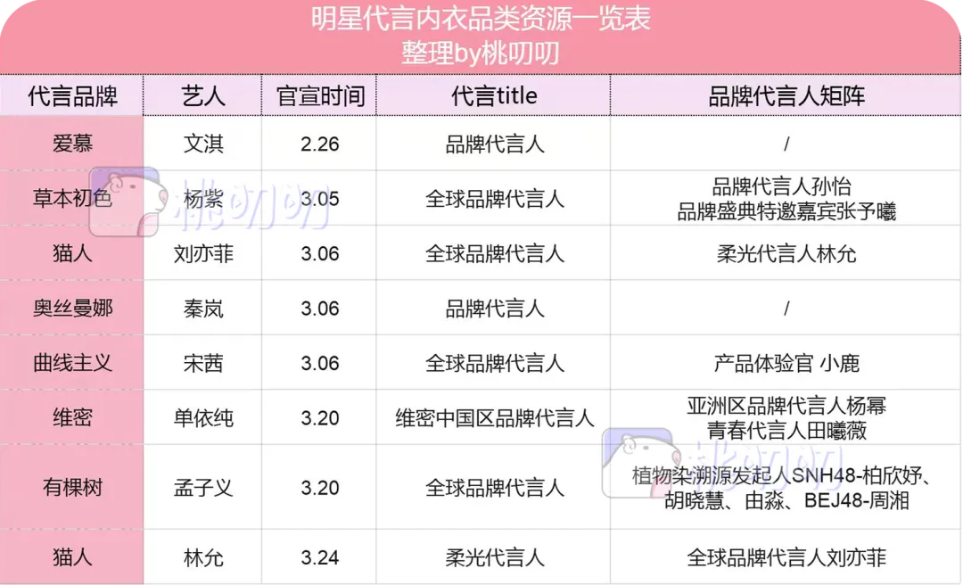据桃叨叨统计,2026开年有超8位女星官宣了新的内衣(家居)代言。