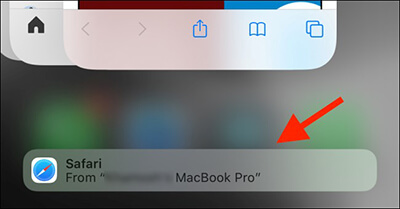 步骤 5. 在屏幕底部,您将看到一个“Safari”栏,显示打开选项卡的设备名称。点击它即可立即在新 iPhone 上的 Safari 中打开网页。