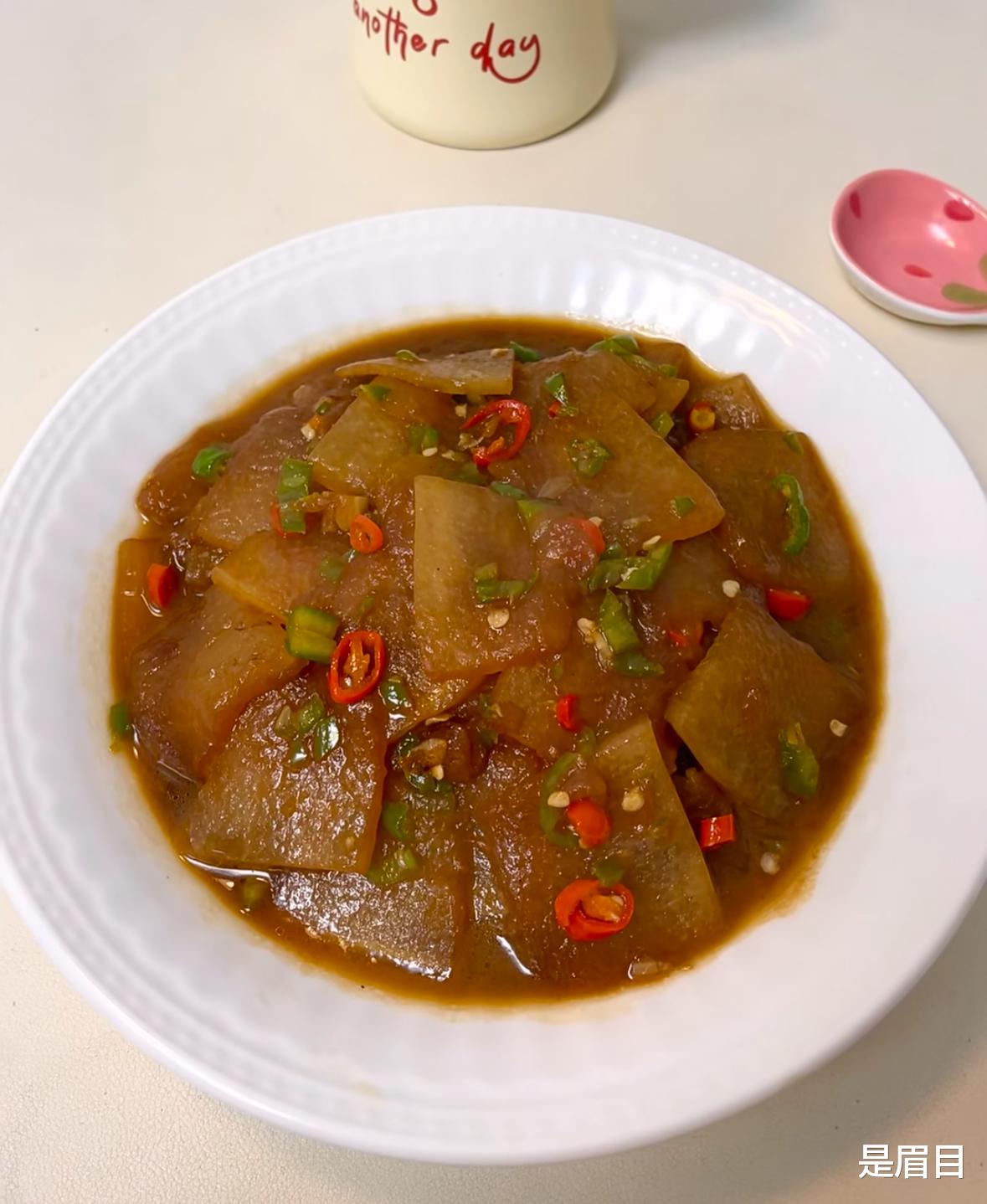 第一步:1. 冬瓜去皮去瓤,切成约1.5-2厘米厚的方块或片状2. 用刀在冬瓜块的皮面轻轻划十字花刀(深度约冬瓜厚度的一半),这样更容易入味3. 用厨房纸吸干冬瓜表面水分,避免煎的时候溅油第二步:1. 热锅凉油,油温烧至五成热时,将冬瓜有皮或划花刀的一面朝下放入锅中2. 用中火慢煎,煎至冬瓜块底面呈现金黄色、边缘微微起焦边3. 翻面继续煎至另一面也微黄,盛出备用第三步:1. 锅中留底油,放入蒜片、姜片、干辣椒(如果用),小火煸炒出香味2. 炒至蒜香味浓郁,注意不要炒糊第四步:1. 将煎好的冬瓜倒回锅中,快速翻炒均匀2. 依次加入生抽、老抽、蚝油、白糖,翻炒至每块冬瓜都裹上酱色3. 倒入半碗清水,水量大约没过冬瓜的2/3即可4. 大火烧开后转中小火,盖上锅盖焖煮8-10分钟第五步:1. 打开锅盖,此时冬瓜已变得透明软糯2. 转大火收汁,期间轻轻晃动锅子或用锅铲小心推动,防止粘底3. 根据口味尝一下汤汁,酌情加盐调味(生抽和蚝油已有咸味)4. 待汤汁变得浓稠,能挂在冬瓜上时即可关火5. 撒上葱花点缀,出锅装盘