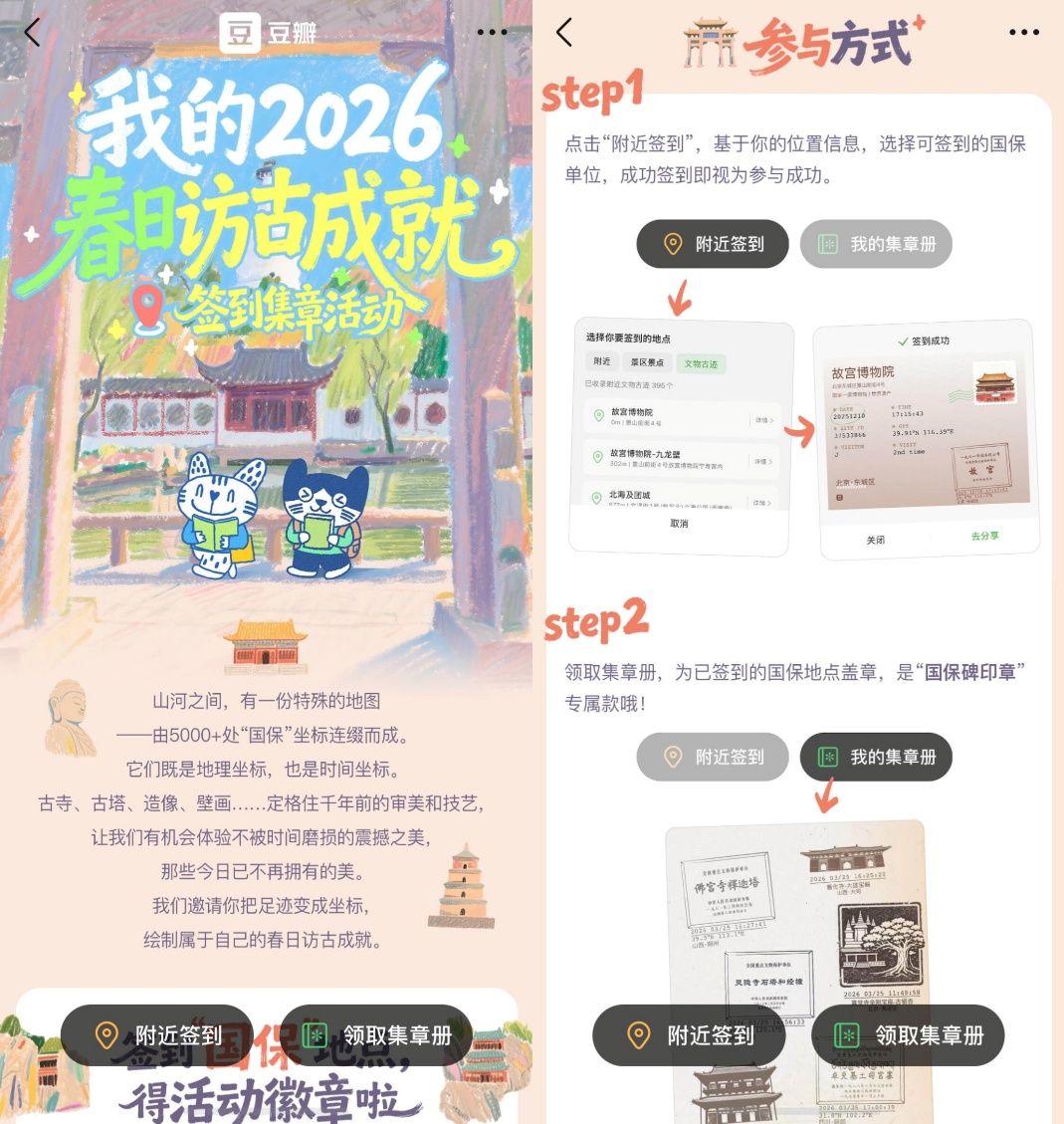 旅途中,那些让人驻足的美景,当然要好好记录下来。今年五一去逛名胜古迹,鸿蒙版豆瓣首发的“春日访古打卡活动”刚好能派上用场——可以在名胜古迹签到打卡。而且,鸿蒙版豆瓣可以直接调用系统相机,拍出的照片张张都更加清晰、更有质感。想和同行伙伴分享美照,两台鸿蒙手机直接通过“碰一碰”或“隔空传送”就能秒传,高效且便捷。