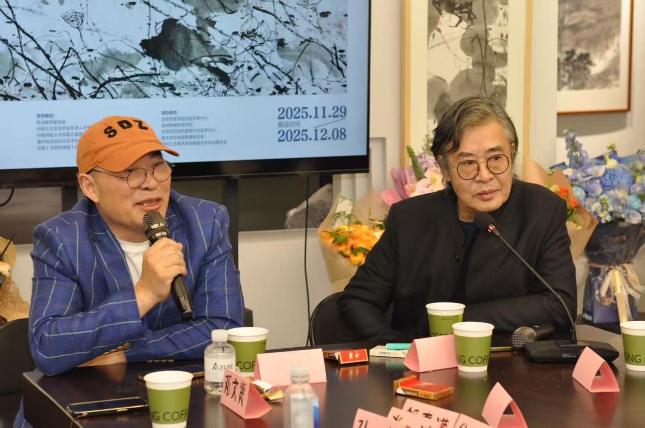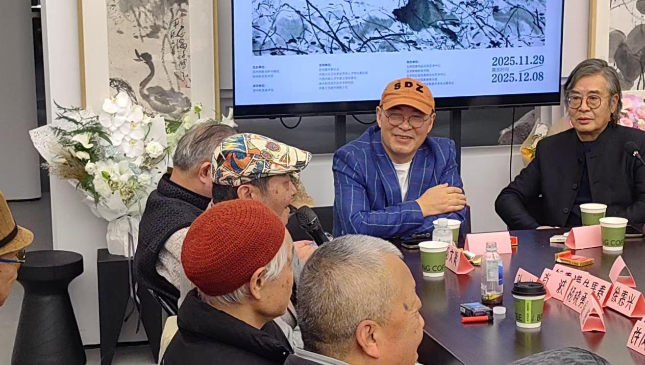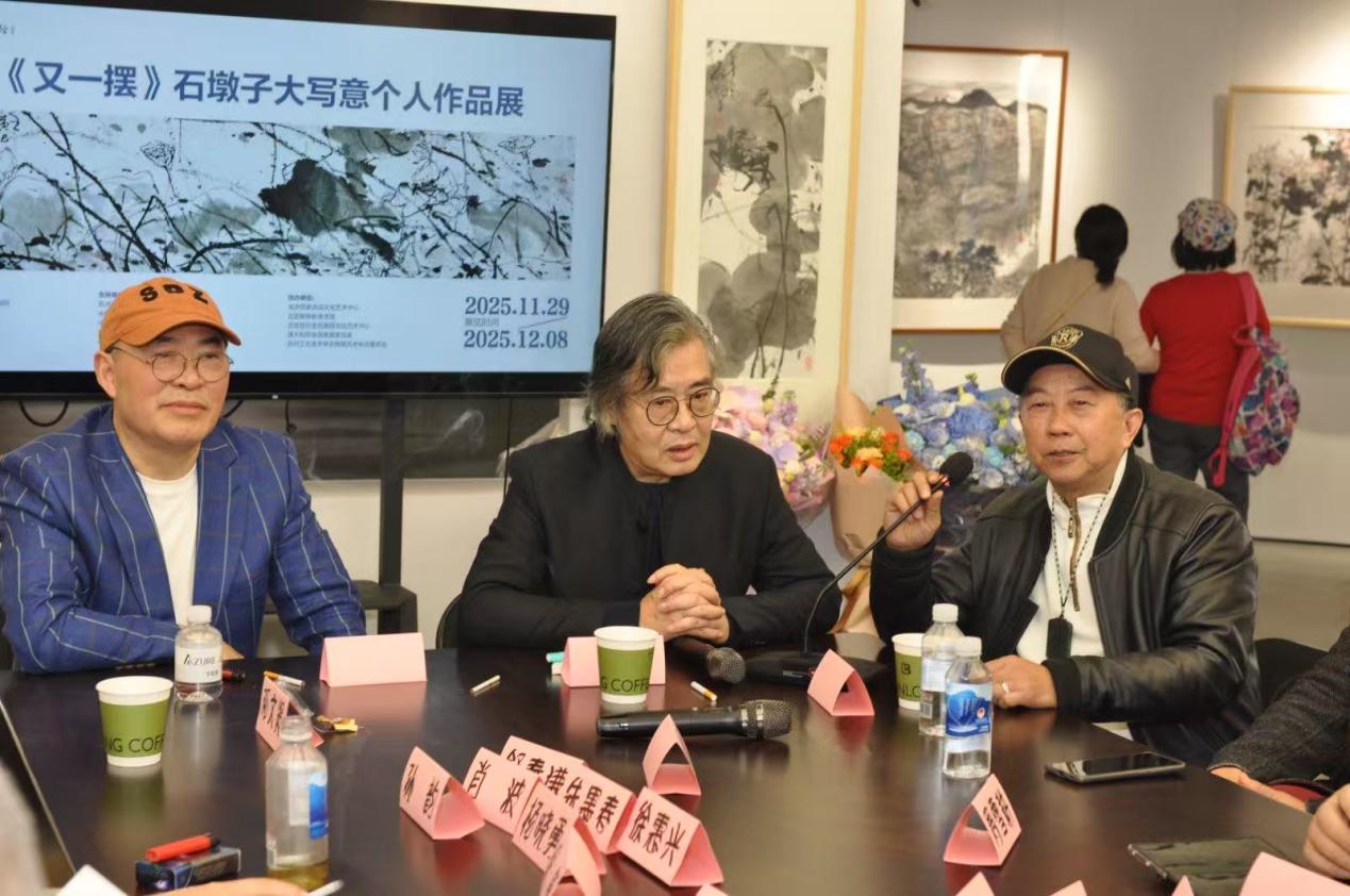 大咖们围绕作品各抒己见、观点交锋:有专家盛赞其以草书笔法入画的独特笔墨,墨鸭、仕女、山水等作品兼具吴门画派“以书入画”传统底蕴与西方构成美学,形简神丰;也有学者聚焦其跨界经历与旅澳体验,肯定其“摆荡中守根”的创作哲思——既以多元视野拓宽艺术边界,又深植吴文化根脉,为当代大写意艺术创新提供了新范式。现场插话、补论不断,尽显行业对石墩子艺术创作的高度关注与认可。