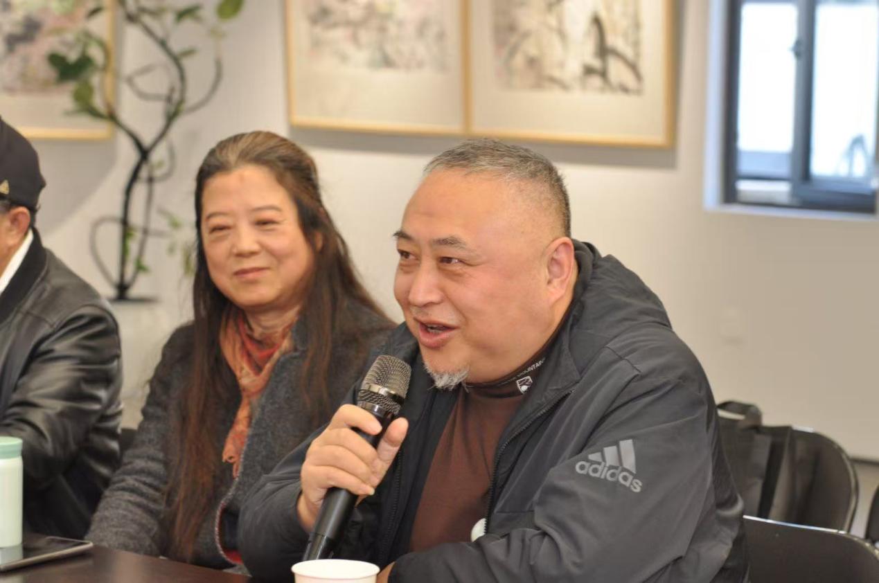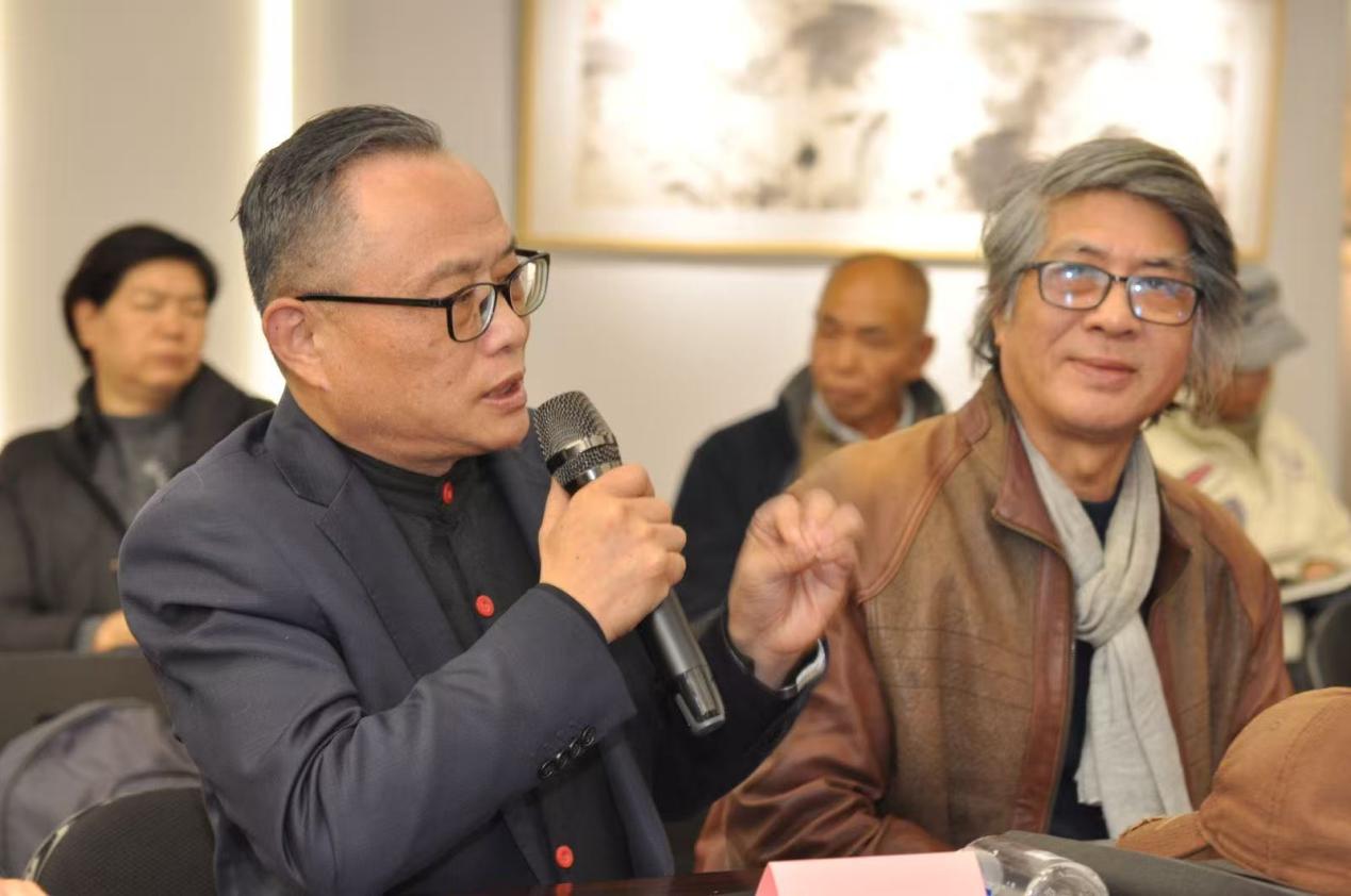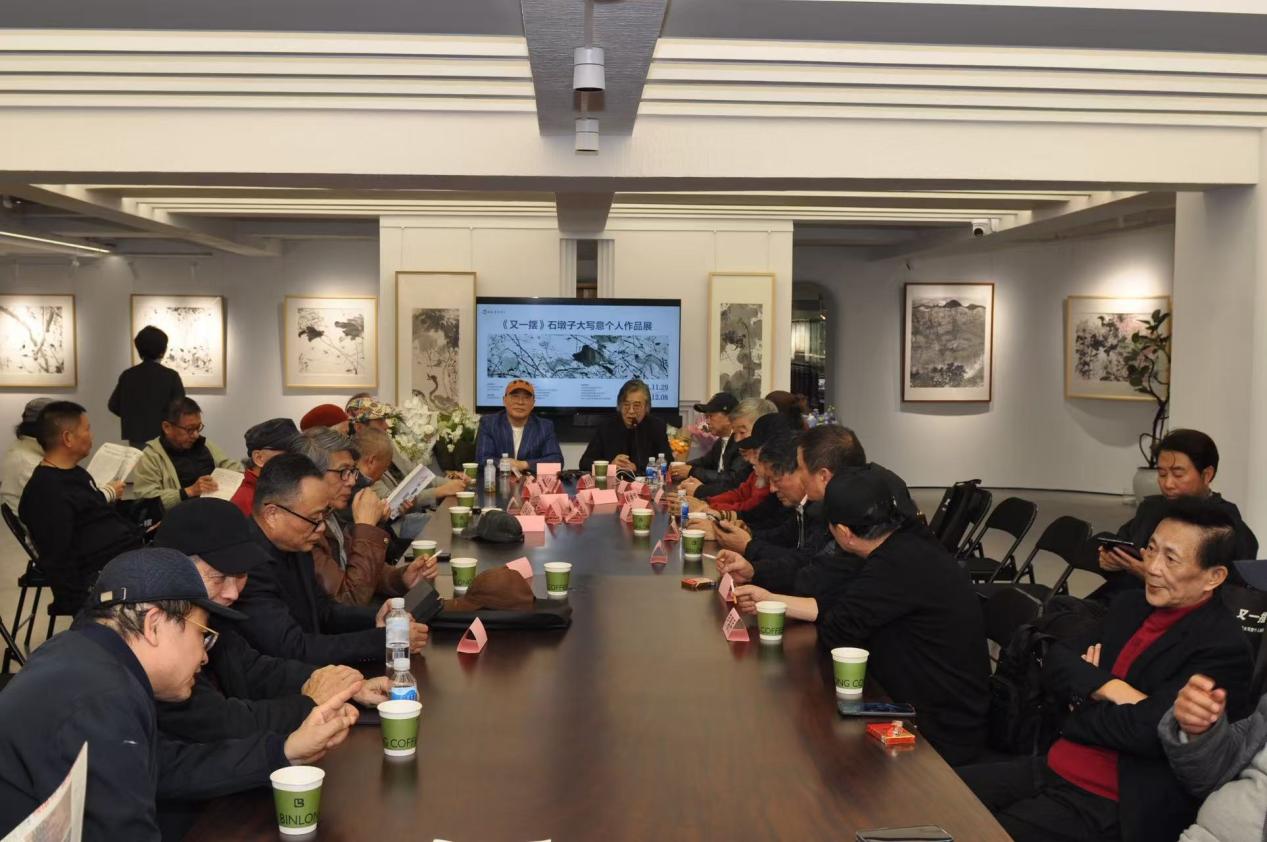 大咖们围绕作品各抒己见、观点交锋:有专家盛赞其以草书笔法入画的独特笔墨,墨鸭、仕女、山水等作品兼具吴门画派“以书入画”传统底蕴与西方构成美学,形简神丰;也有学者聚焦其跨界经历与旅澳体验,肯定其“摆荡中守根”的创作哲思——既以多元视野拓宽艺术边界,又深植吴文化根脉,为当代大写意艺术创新提供了新范式。现场插话、补论不断,尽显行业对石墩子艺术创作的高度关注与认可。