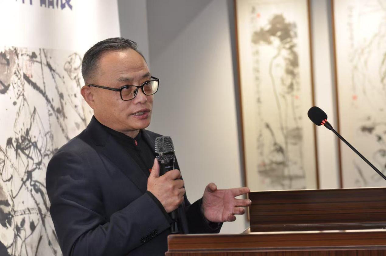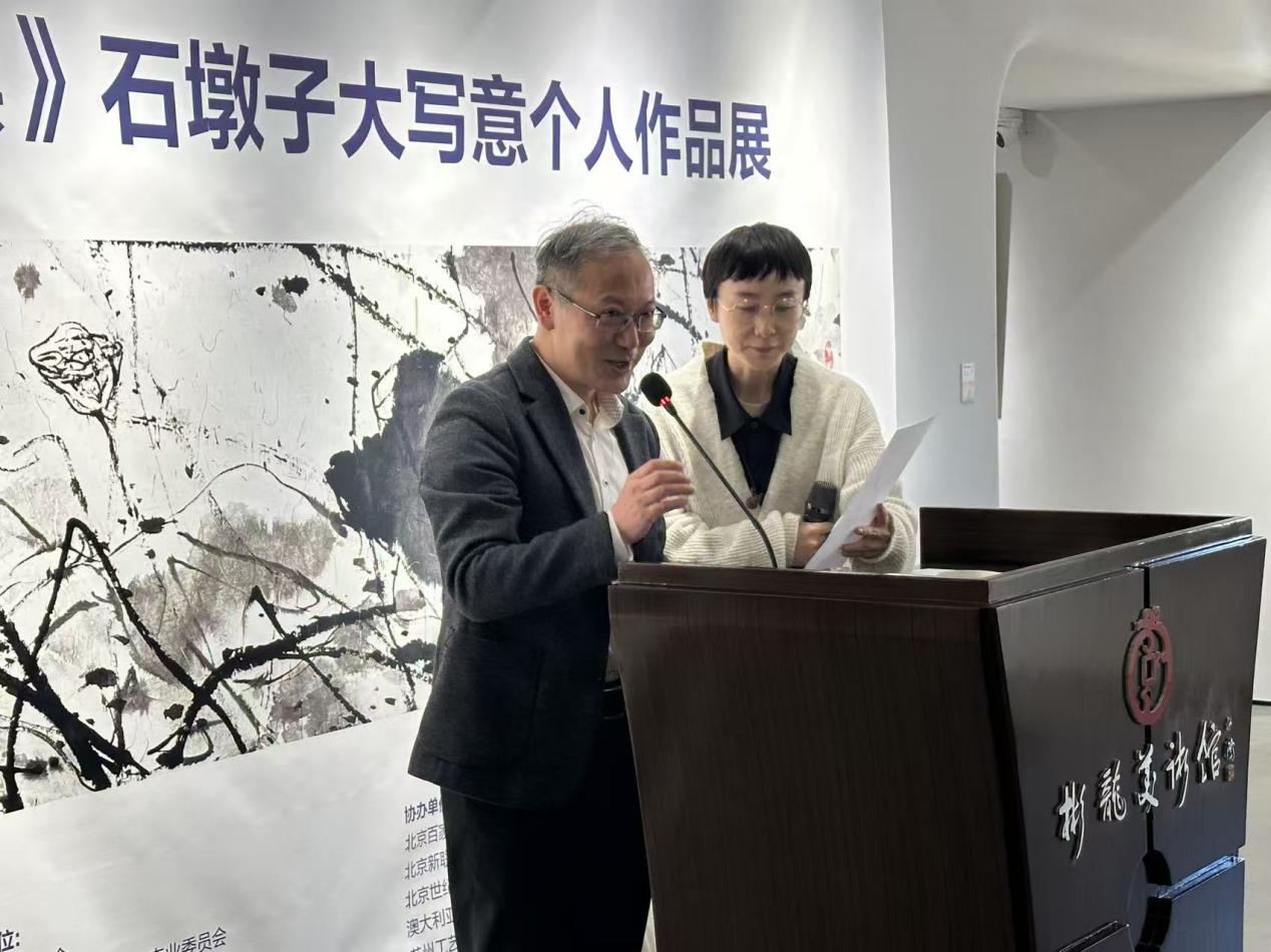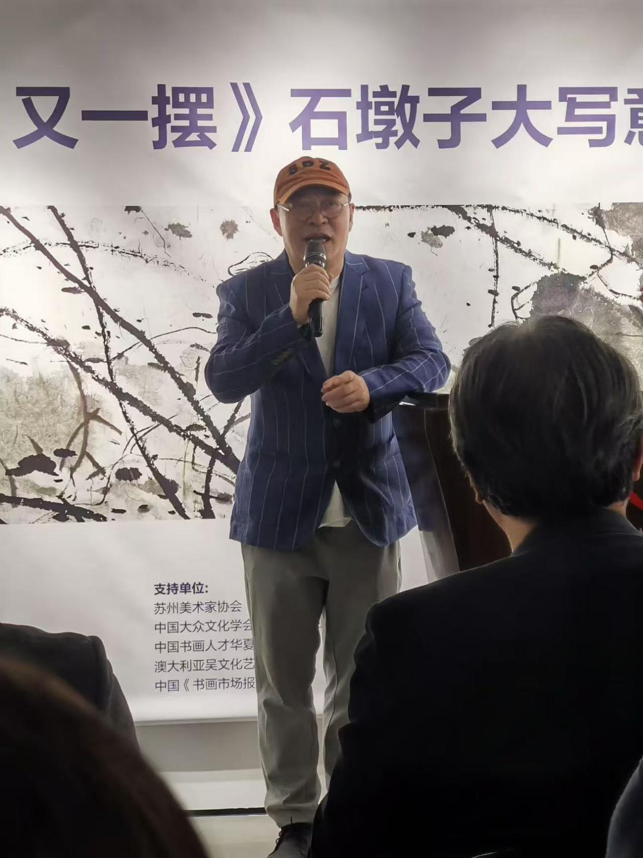 苏州市侨联主席李文辉先生向大家宣布:石墩子《又一摆》大写意个人作品展 正式开幕!