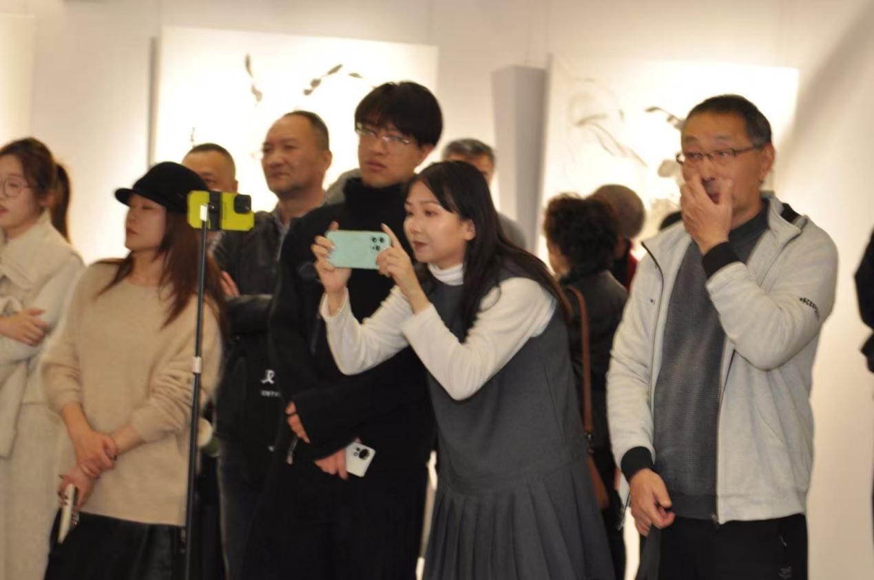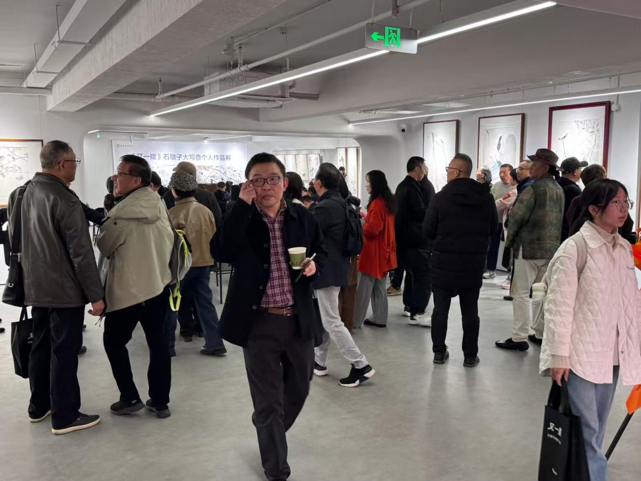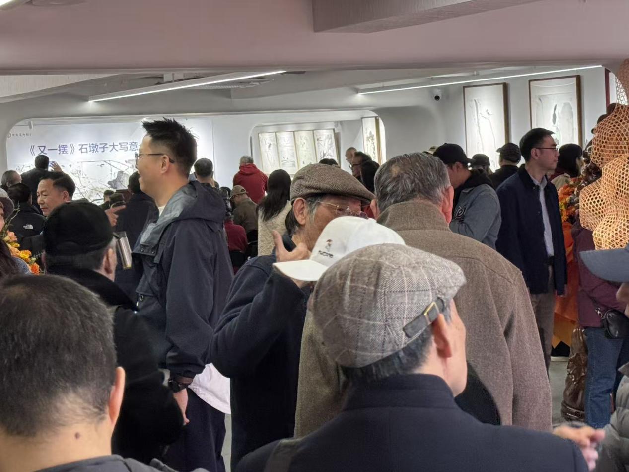 本次展览规模空前、大咖云集,成为苏州文化界的一大盛事。原苏州副市长曹后灵,苏州侨联主席李文辉,苏州侨联对外文化促进会会长王建国,侨联华侨书画院院长孙韵等领导嘉宾莅临现场,与120余位书画家、近100位跨界艺术人士及100余位各界爱好者共同见证开幕时刻。现场30余个鲜花篮整齐排列,传递着对展览的诚挚祝贺,嘉宾们驻足画作前,或细细品鉴、或交流探讨,对石墩子的艺术造诣给予高度评价。