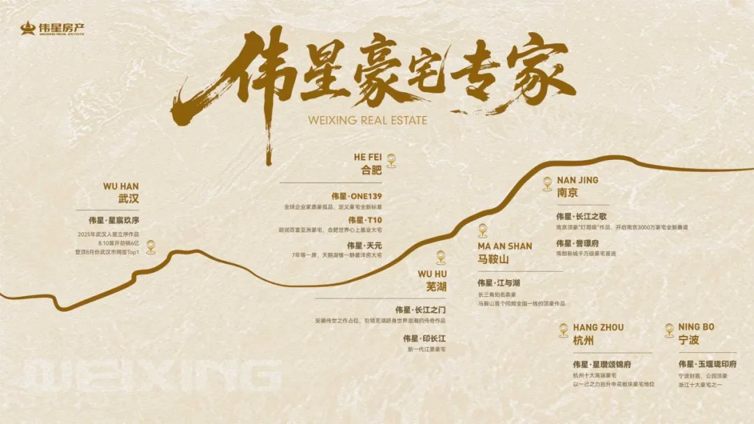 在杭州,伟星星瓒颂锦府位列十大高端豪宅之列;在浙江,伟星玉堰珑印府跻身十大高端产品阵容;在芜湖,伟星长江之歌成为芜湖唯一200米超高层江景封面项目。而在合肥,伟星更以天元、T10、ONE139三大标杆,稳居城市豪宅版图的中心。