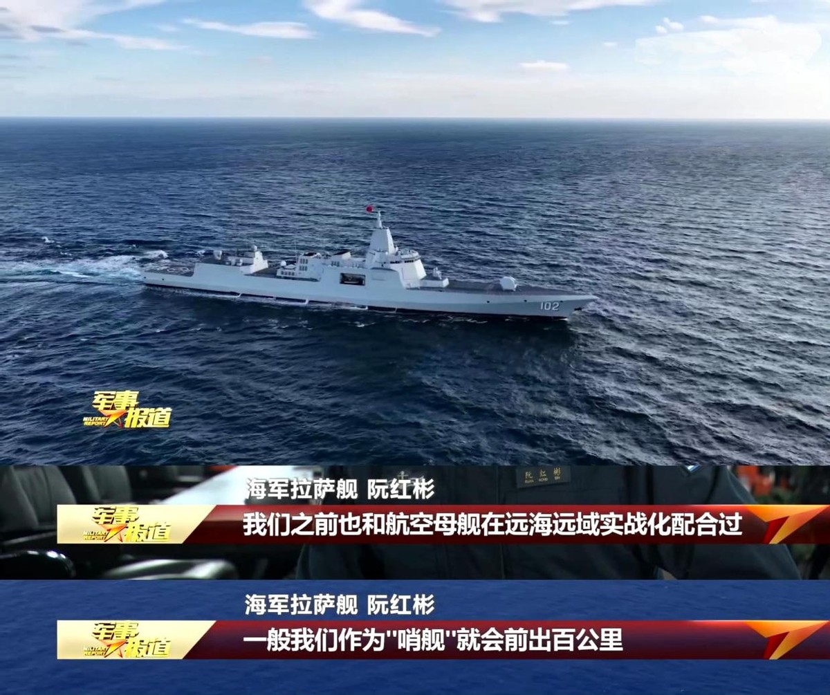 近日,央视军事报道节目采访了拉萨舰武备干部阮红彬,他提道: 我们之前与航母在远海实战化配合过,一般我们是作为"哨舰"前出百公里的。