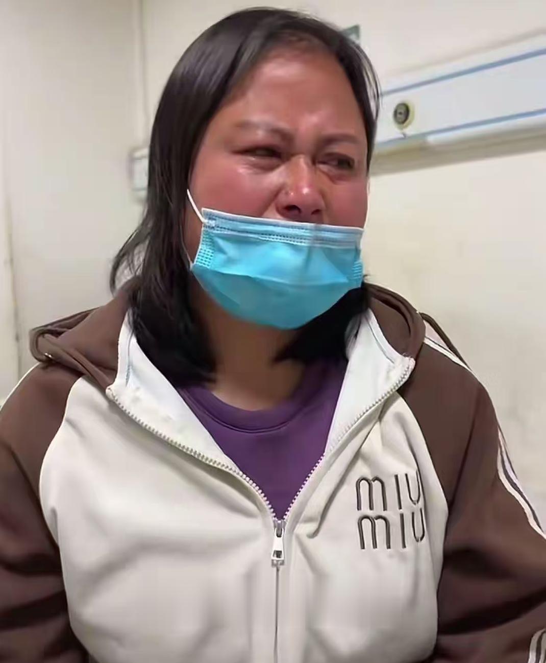 宝妈心疼孩子,但也没有办法,只能跪在床头,一边哭一边抱着儿子。