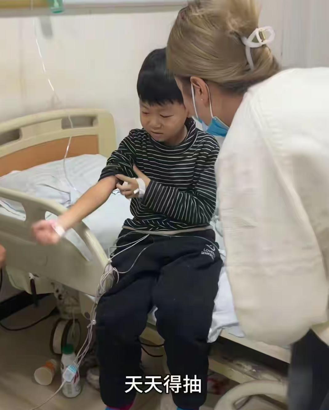 但他毕竟是个孩子,有时候扎针非常疼,再加上药物的刺激,他会疼得在床上打滚,需要几个人按着。