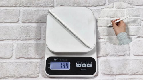 ≫握笔舒适度测试:质感优良,这款电容笔采用了烤漆铝合金材质,拿在手上非常舒适细腻。而且它的笔杆粗细刚刚好,其曲线设计还很符合人体工学,加上它的重量仅11.2g,非常轻盈,即便是长时间的连续握笔,也不会对我们的手腕造成负担。