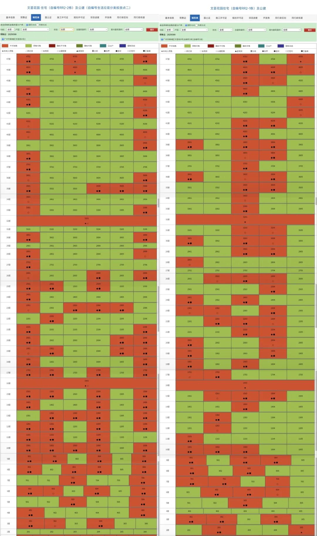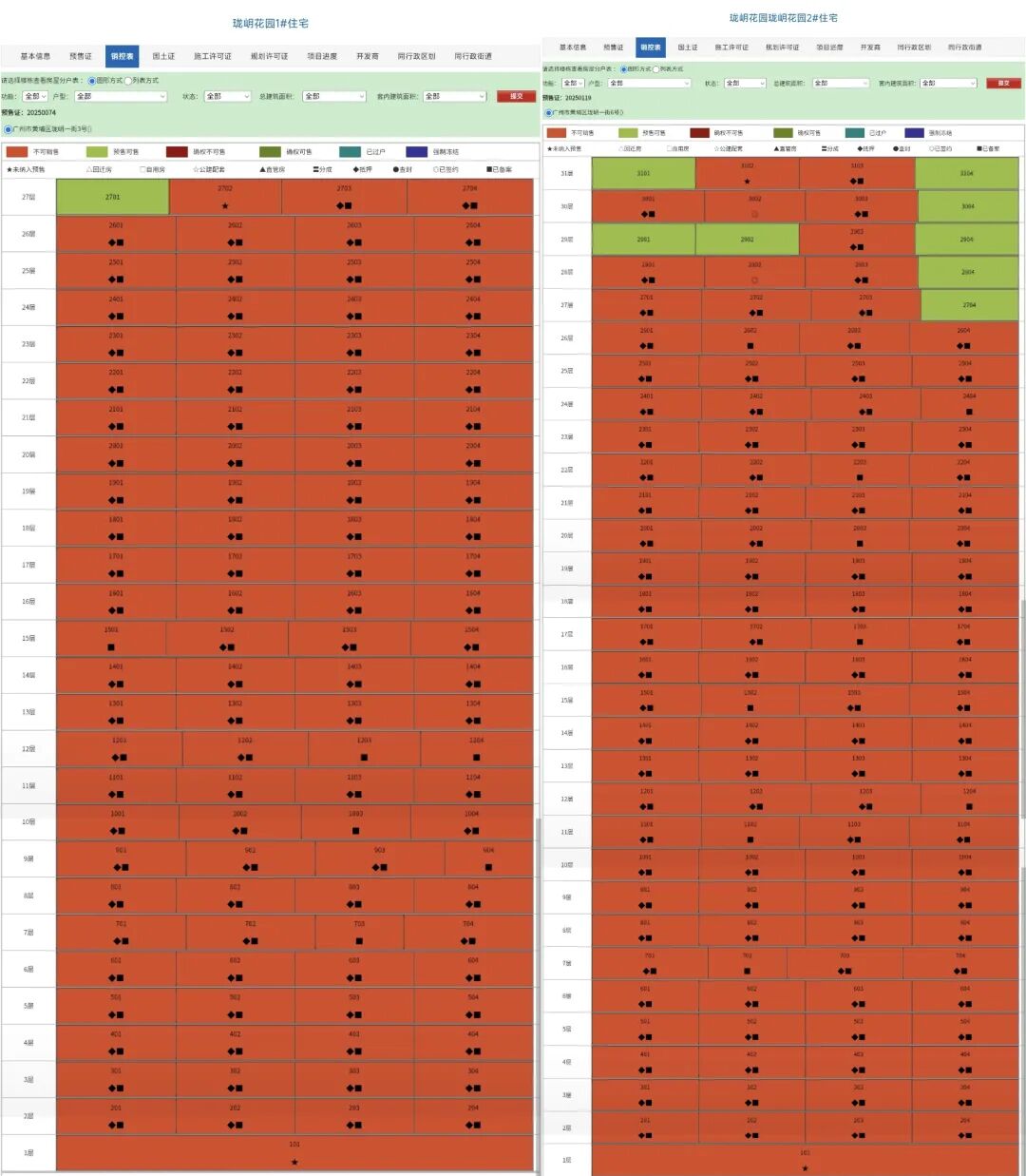 销控表可以看到,目前这两栋除了个别94㎡高楼层单位,已经全部网签。
