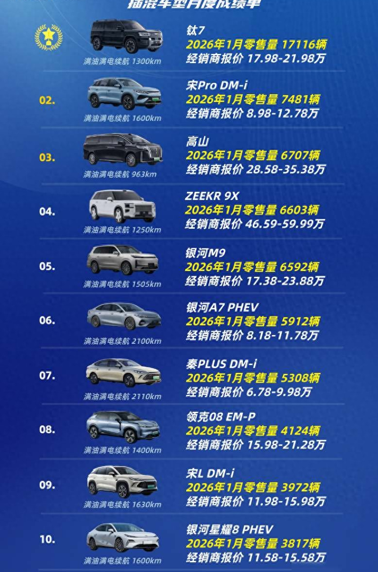 数据也证实了这一点,1月份新能源车批发量中,纯电动车占了58%,插电混动占33%,增程式占9%,其中插电混动的增长最快,而且这种增长不是靠补贴推动的,像云南山区和东北农村这些地方充电桩少,插电混动车加个油就能跑上千公里,用户看重的是这种可靠方便。