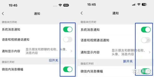 另外,微信还悄悄调整了微信设置内的开关样式。新的开关样式一眼看过去感觉差不多,但新增了一些细节。
