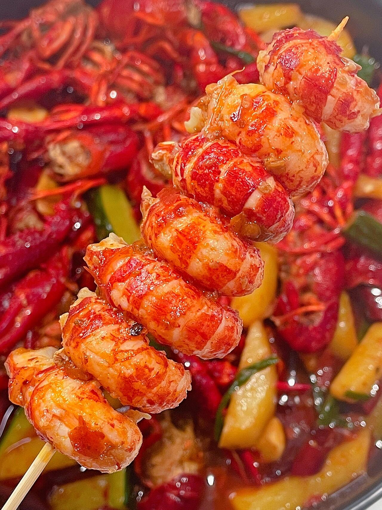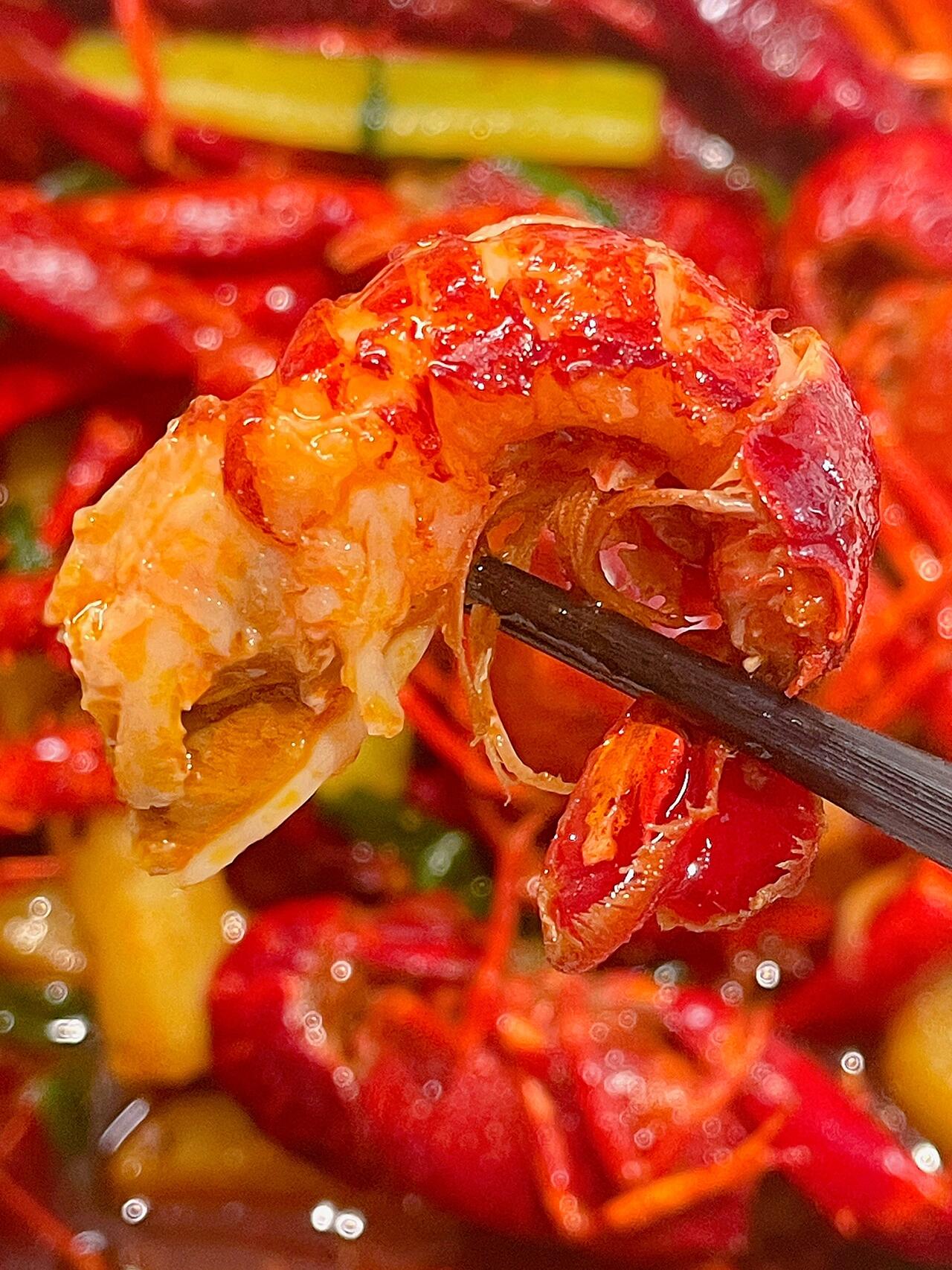 吃小龙虾可是个技术活。先吸一口虾壳上的汤汁,然后从虾尾剥开,轻轻一拉,整只虾肉就出来了。虾头里的虾黄是精华所在,千万别浪费!如果嫌麻烦,也可以准备一把剪刀,从虾背剪开,这样更容易入味,吃起来也方便。