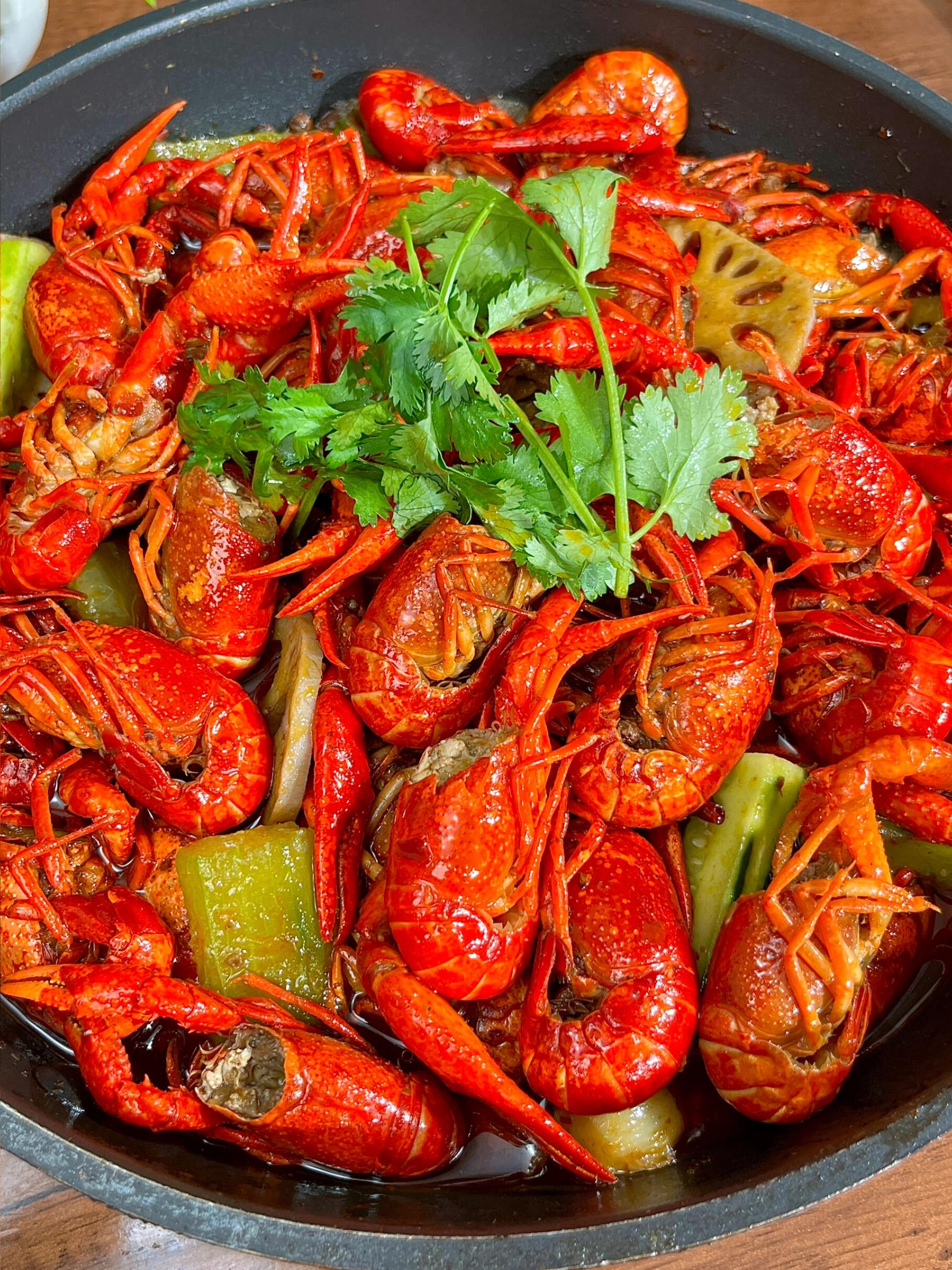 红彤彤的小龙虾堆成小山,上面点缀着翠绿的香菜,光是看着就让人食指大动!端上桌的时候,记得配上一碗白米饭或者一份煮好的面条,等吃完小龙虾,用汤汁拌一拌,那滋味,神仙都不换!