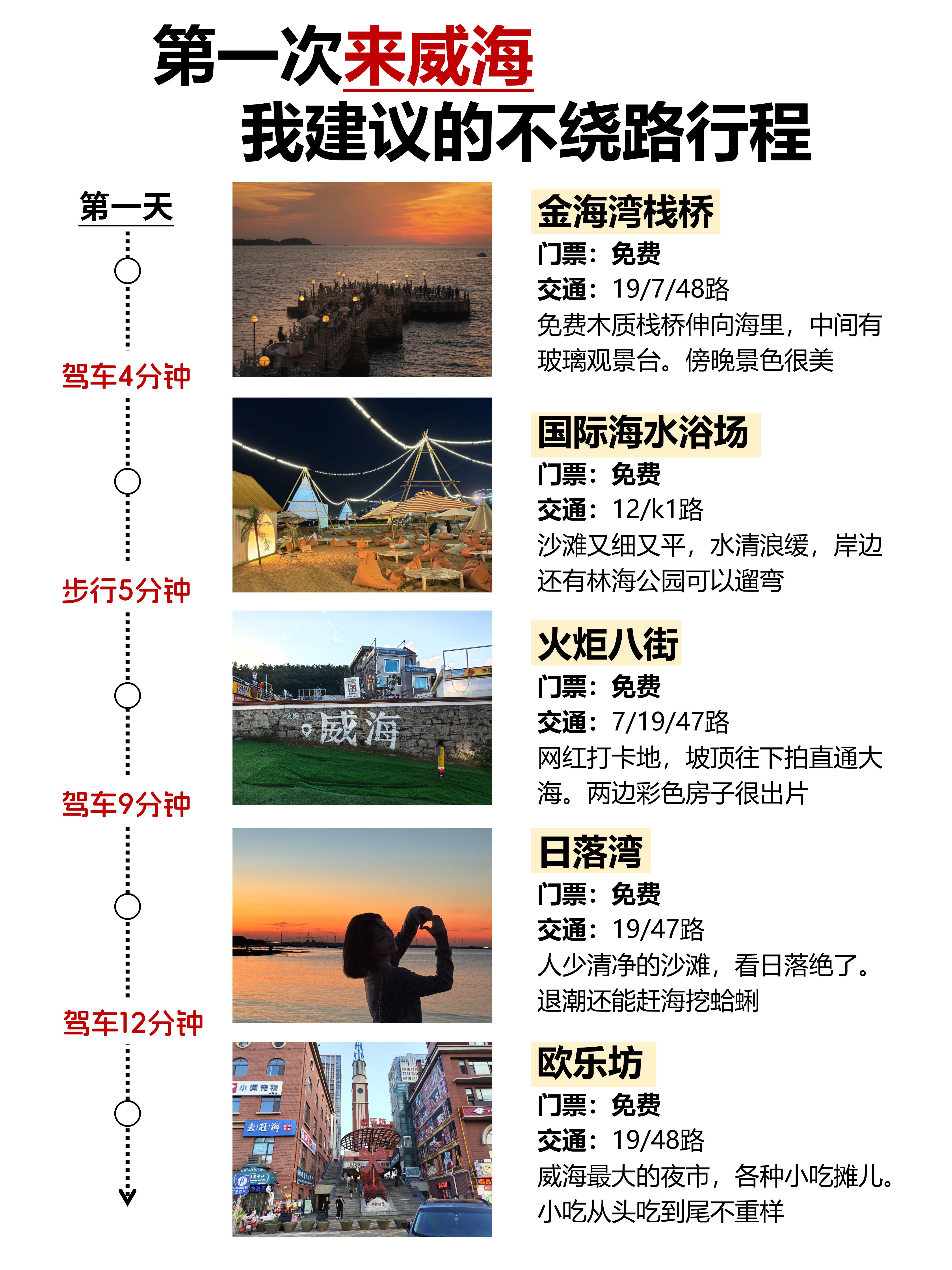 坐高铁优先选威海北站,离国际海水浴场和火炬八街近,出来打车十来分钟就到。出站别坐黑车,打正规出租车,起步价8块,安全又实惠。