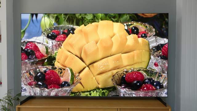 广色域对比:对比94% P3广色域的电视,可以看到85Q10M Ultra,黄得极准、绿得极正,色彩饱满立体感强。