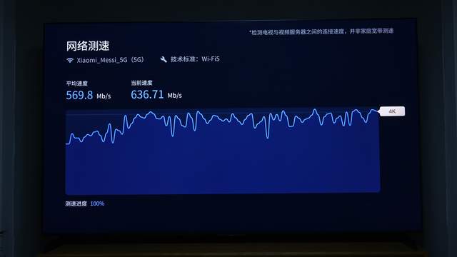 Wifi无线实测:由于电视支持双频WIFI6,实测连5Gwifi无线可以跑满全速(我家的无线网络最高是600Mb/s),看4K或者奈飞片源没有问题,建议大家也使用5Gwifi,而不是使用默认的有线网线接口(会限速)。