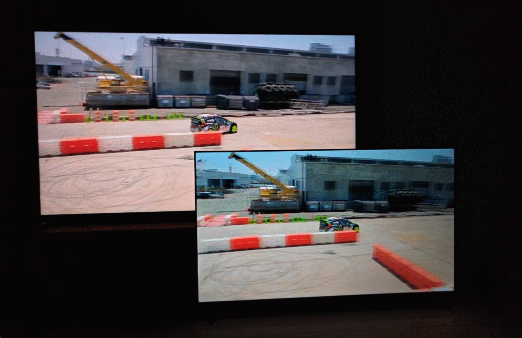 动态表现:无论是观看体育比赛还是看动作电影,动态流畅度都至关重要。85Q10M Ultra配备了原生4K 144Hz屏幕+配合顶级超级蝶翼华曜屏+旗舰MEMC算法,实测可以看到,同样开启(4K 144Hz+MEMC),85Q10M Ultra(左上)动态相比中端电视(右下角)明显更流畅丝滑,没有明显的拖影。
