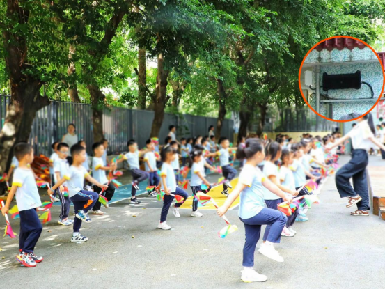 荔园外国语小学狮岭校区附属幼儿园地处福田核心居住区,与多个成熟住宅社区紧密相邻。每日户外活动、升旗仪式及课间播报等常规声响,不可避免地对周边住户的日常生活造成干扰。如何在保障教学秩序与幼儿活动体验的同时,兼顾社区邻里关系。经多方案比选,幼儿园决定引入静境定向音响系统,探索校园声环境精细化管理新路径。
