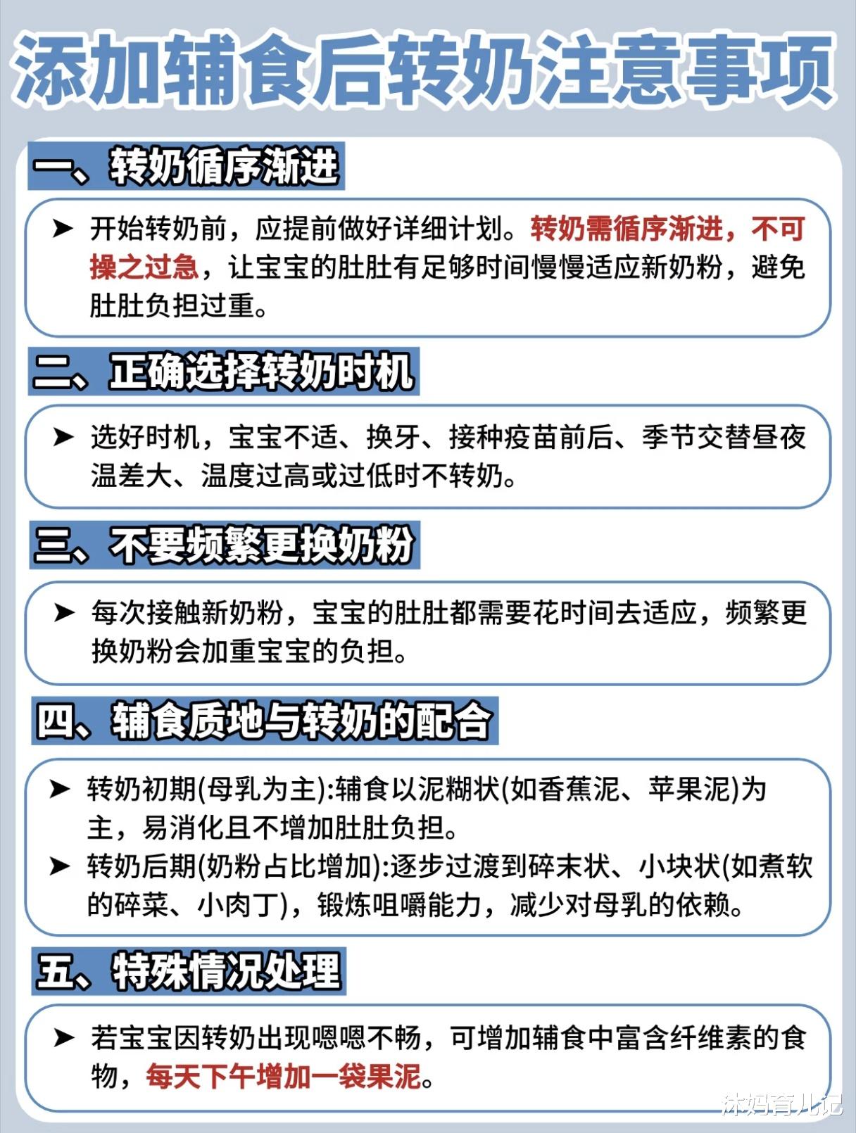 添加辅食后,很多细节爸妈要格外注意,千万不要给宝宝吃盐、糖、酱油等调味品,宝宝的肾脏还没发育好,过早吃调味品会加重身体负担,也会让他养成重口味的习惯,影响以后的饮食。也不要在辅食里加蜂蜜、坚果碎、大块果肉,这些容易导致过敏或呛噎,初期辅食保持单一、清淡就好。另外,喂辅食时一定要让宝宝坐着吃,绝对不能躺着,避免食物呛到气管,吃完后可以喂一两口水,清洁口腔,预防蛀牙。