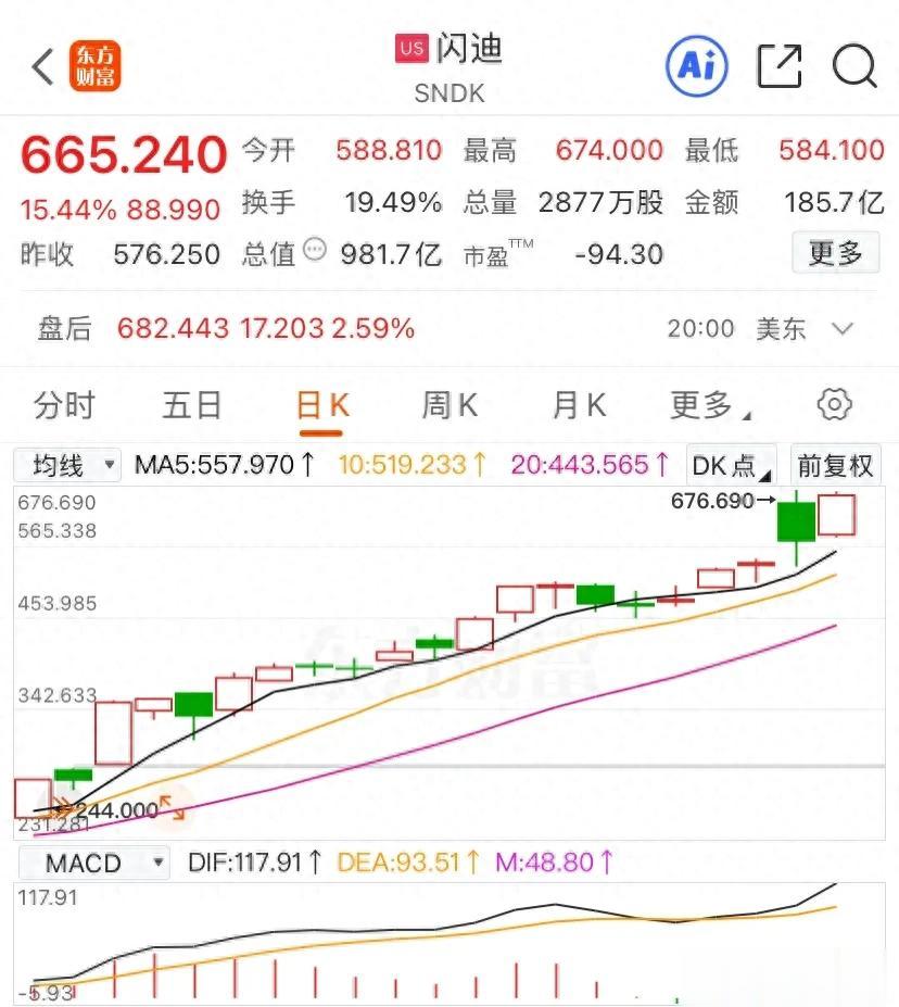 这波大涨并非突然爆发,上周五闪迪发布最新财报和业绩展望后,立刻获得华尔街集体热捧,多家顶级投行火速上调目标价,其中伯恩斯坦直接喊出1000美元目标价,对比当前665美元的股价,还有超50%的上涨空间。