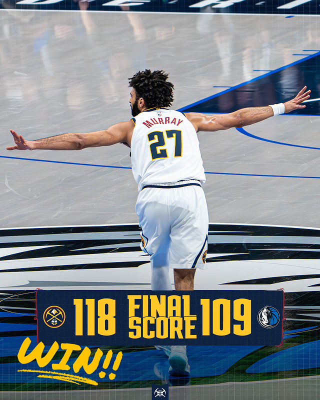 穆雷依旧发挥出色,出战38分钟,24投13中,三分6中2,罚球5中5,砍下33分2篮板5助攻,也有3次失误,正负值+10。约基奇伤停之后,穆雷独自带队,表现非常出色,出战六场比赛,场均可以砍下28分10助攻。