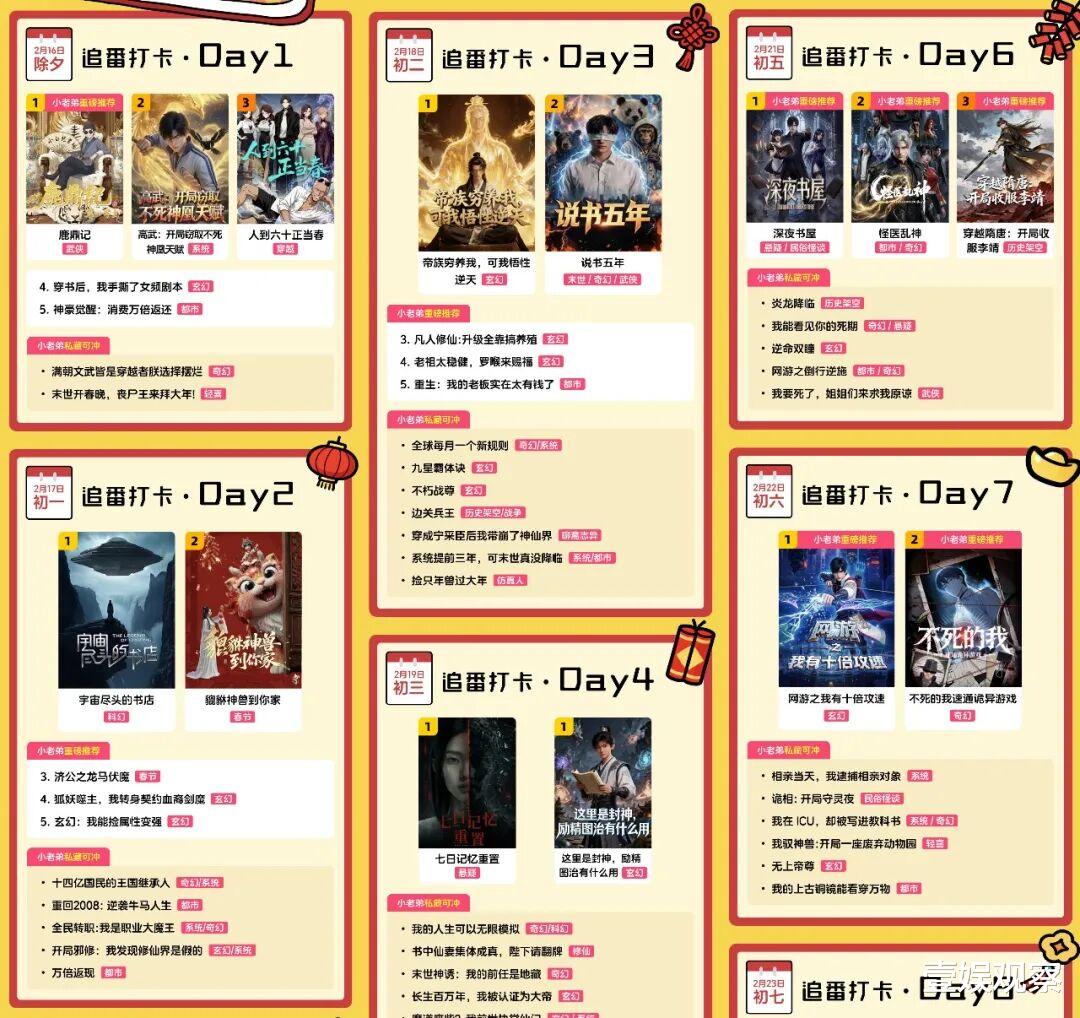 平台在发布春节档追剧片单,片方在开刷春节档战报,无论是上新漫剧数量的爆发,还是单部作品播放数据与类型突破的迭代,都让首个漫剧春节档意义非凡。