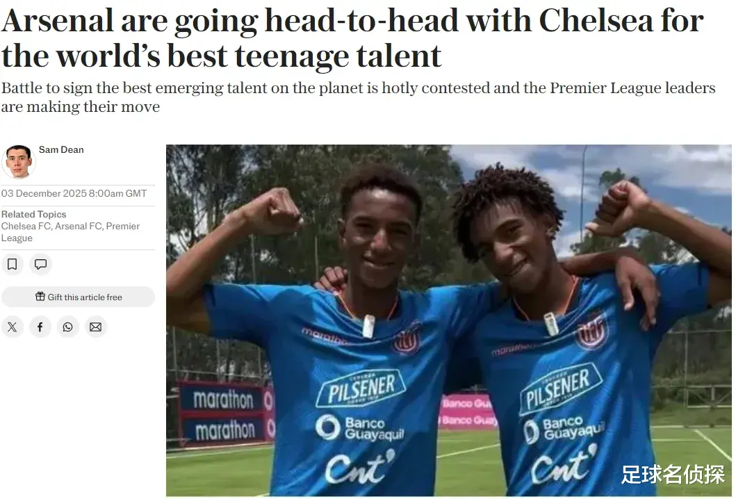 官方:阿森纳宣布和厄瓜多尔球队山谷独立就16岁双胞胎兄弟埃德温-金特罗和霍尔格-金特罗的转会达成了协议,2人将在2027年夏天年满18周岁后正式加盟。