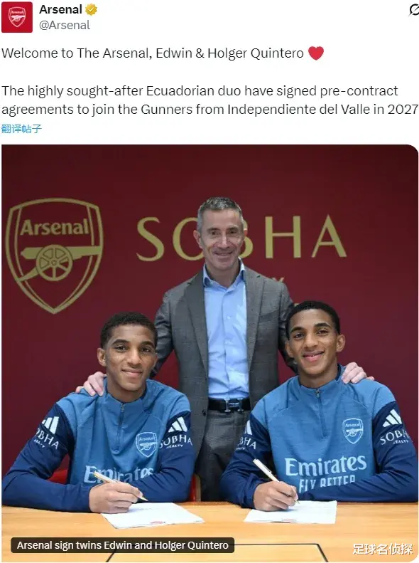 着实没想到这么快就官宣了,不像阿森纳的风格,而且一般青年球员签约是阿森纳青年队的官推官宣,但这次直接用了官推!还有贝尔塔亲临,很有牌面!