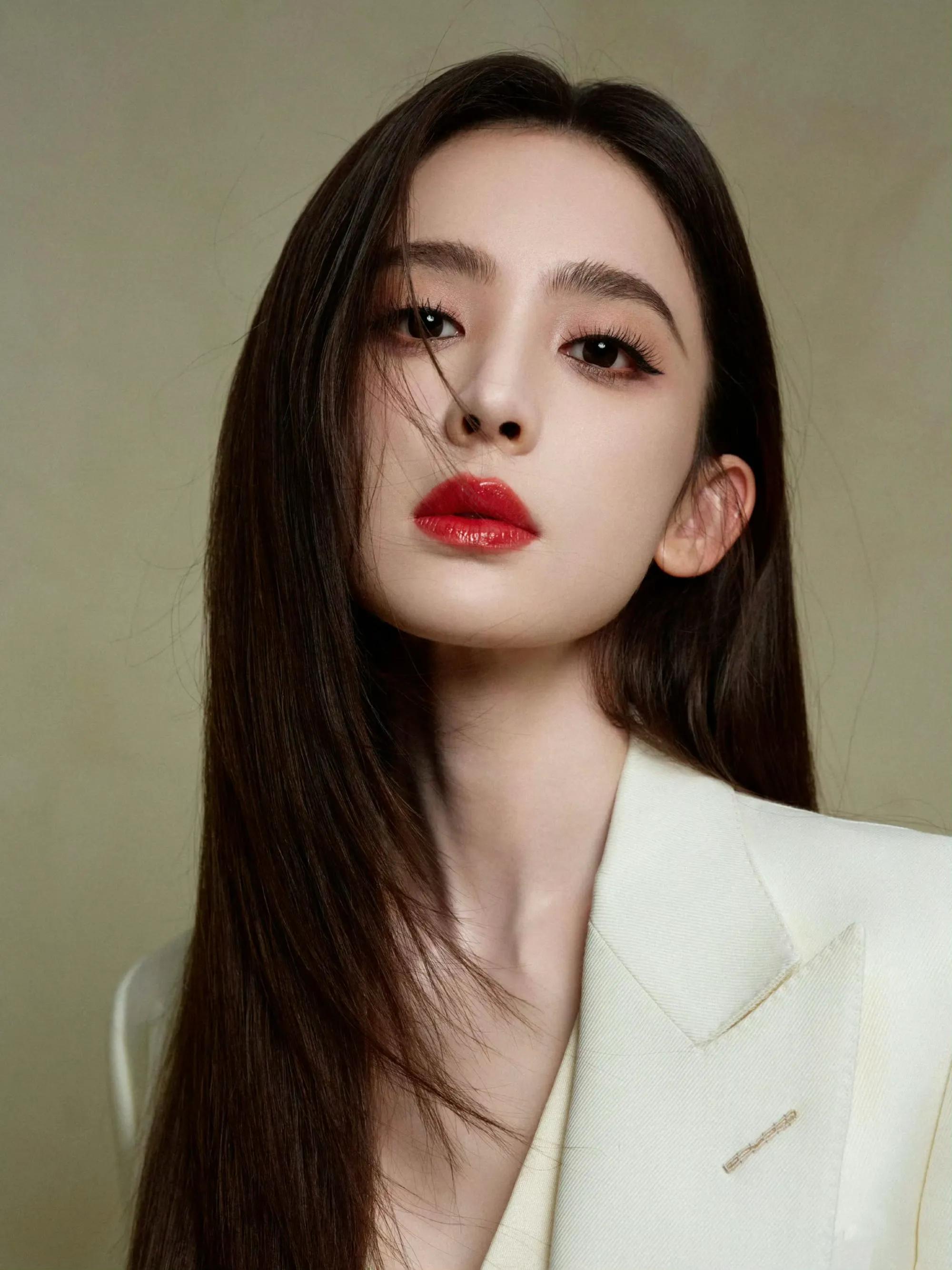 娜扎西装外套搭配超短裙,一头飘逸秀发直披肩头,尽显优雅魅力,身姿优美有型,一双白皙修长美腿性感十足,,烈焰红唇妩媚动人,