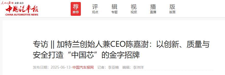 中国汽车报网 2025-06-13——专访 || 加特兰创始人兼CEO陈嘉澍:以创新、质量与安全打造“中国芯”的金字招牌