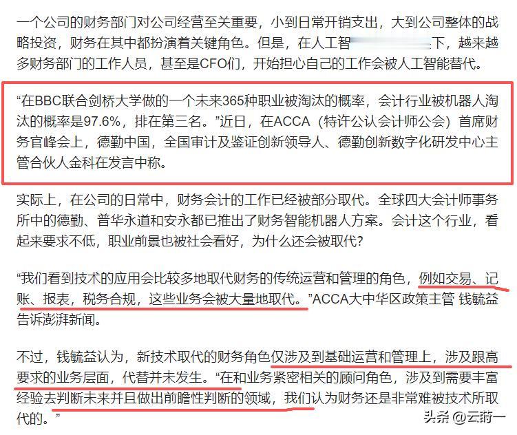 数据显示,初级会计被取代的概率高达97.6%,当老板惊觉一个软件就能顶替一屋子人力时,裁员名单上又怎会少了你的名字?