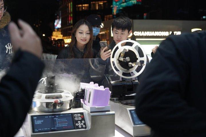 服务员只需撕开预制菜的铝箔包装,如同添加燃料般将其倒入机器,随后按下那个设定好的“鱼香肉丝”按键。