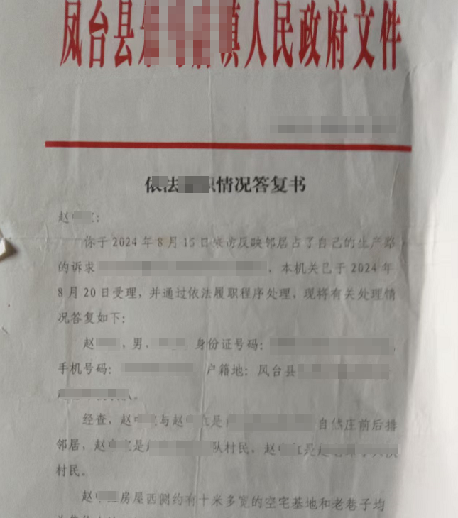 2025年9月,针对赵某松相关问题,朱马店镇政府答复称该巷道“通行功能丧失”,赵某松作为六队村民可继续使用,且其不动产权证书审批手续完备。但该答复未详细说明“是否召开村民会议研究”“是否征求集体意见”等关键问题,赵先生一方认为“村民研究同意”的相关表述缺乏依据,审批材料公开度不足,相关质疑未能得到充分采信。