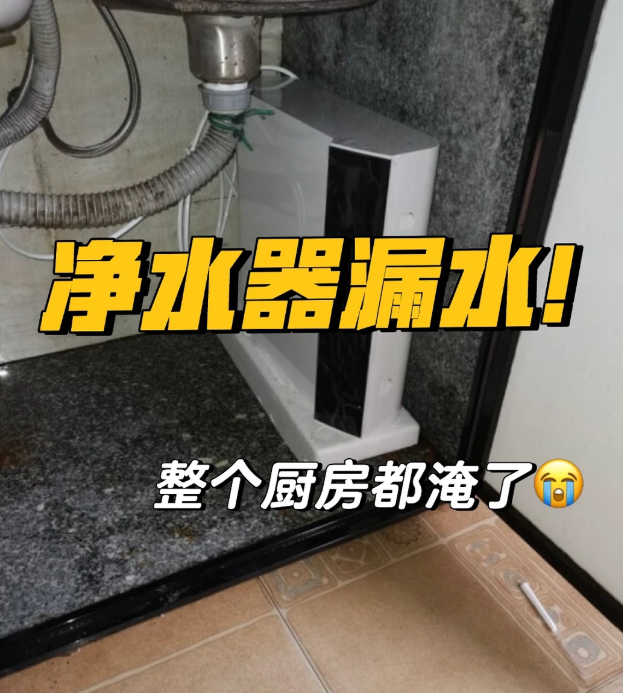 净水器漏水淹没了厨房,甚至楼下的邻居,造成了重大经济损失。