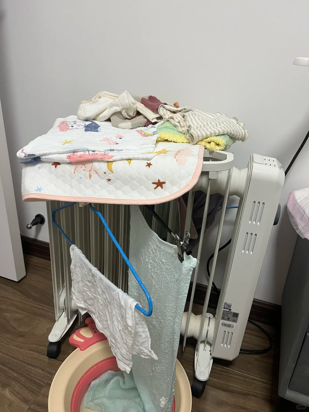 --有了这个油汀,洗了的衣服放上面,一个晚上干的透透的,但用着太费电、太干燥!感觉还不如买空调。
