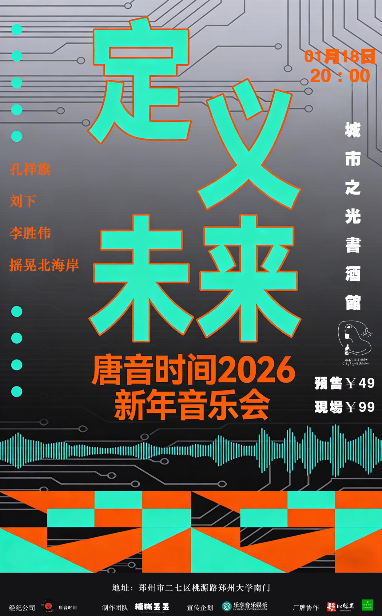 当2025年的余韵渐渐沉淀,2026年的序章正待书写,一场名为「定义未来」的新年音乐会,将在郑州·城市之光书酒馆悄然拉开帷幕。这不仅是一场演出,更是一次关于音乐、成长与重逢的温暖约定——01月18日,唐音时间旗下音乐人将以全新面貌,与大家一起共赴一场冬夜里的音乐对话。