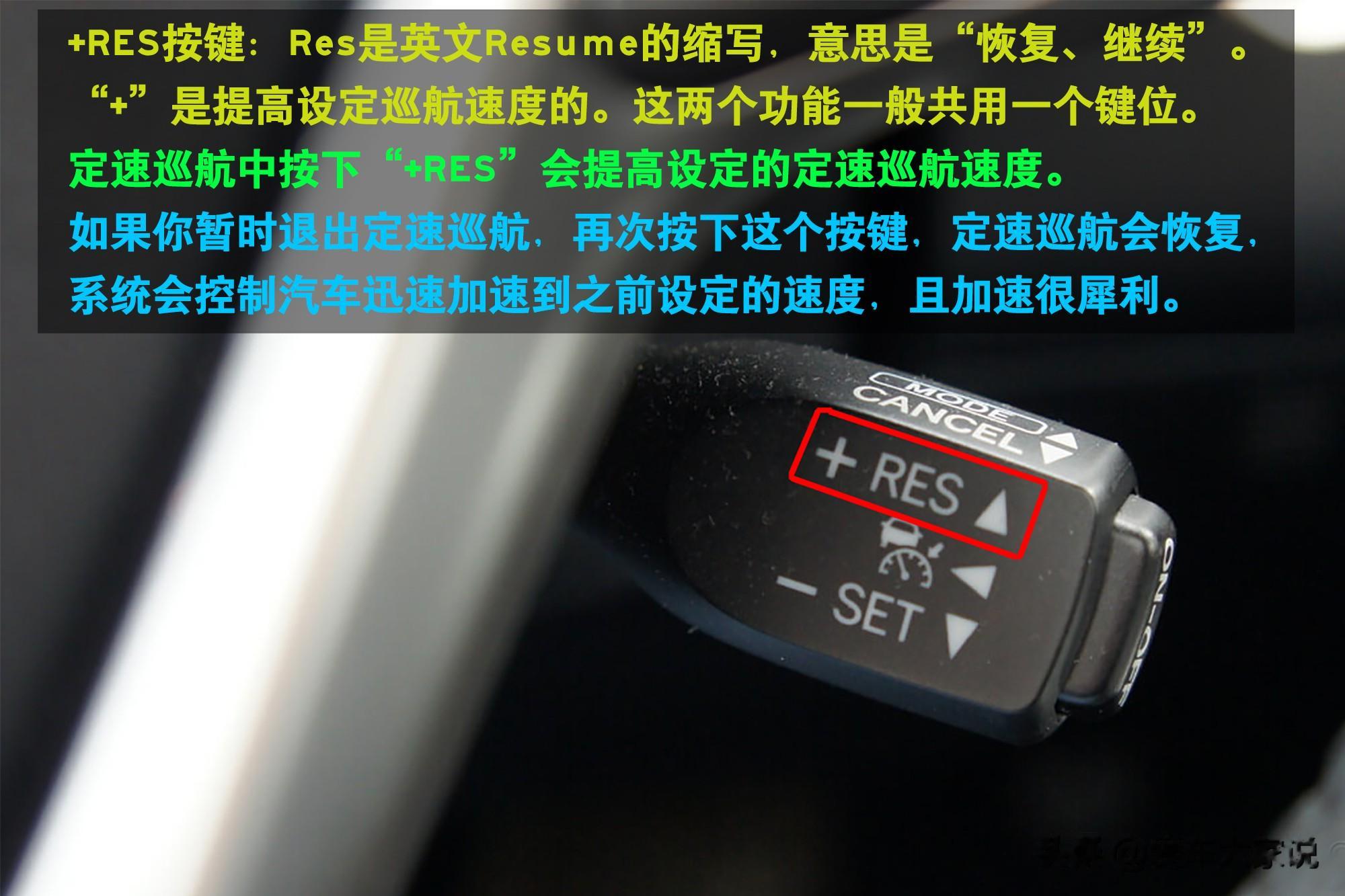 另外还有一种情况就是你暂时退出了定速巡航,但没完全关闭系统,这时候如果不小心碰到恢复巡航按钮时汽车就会以很大的加速度去提速。由于很多人不知道定速巡航的这个设定,而且提速很猛,所以我敢说80%的司机此时会严重惊慌失措,以至于无法及时采取有效措施。这点大家一定要注意。