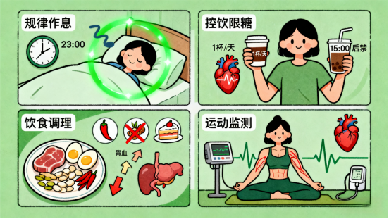 稳住习惯是基础每天11点前睡,别熬夜;咖啡奶茶每天不超1杯,下午3点后不喝;久坐每小时起来走5分钟;情绪不好时找朋友聊,别憋在心里。