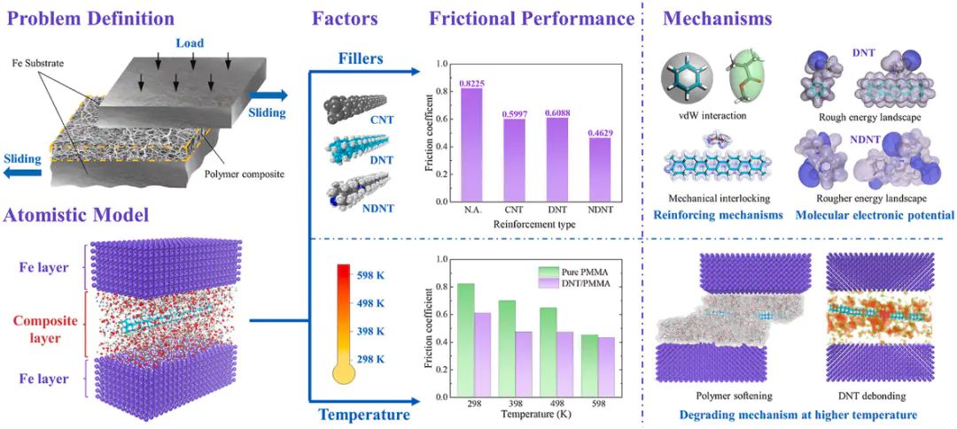 分子动力学,如链折叠和置换。MD依赖于力场模型,适合模拟大规模聚合物体系。例如,DNT 可以通过MD和DFT计算显着提高聚甲基丙烯酸甲酯 (PMMA) 复合材料的摩擦阻力。