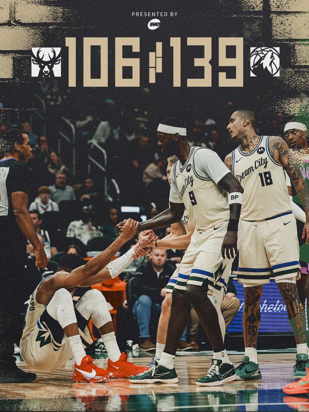 上一场比赛,雄鹿主场106-139惨败爱德华兹、戈贝尔缺席的森林狼。