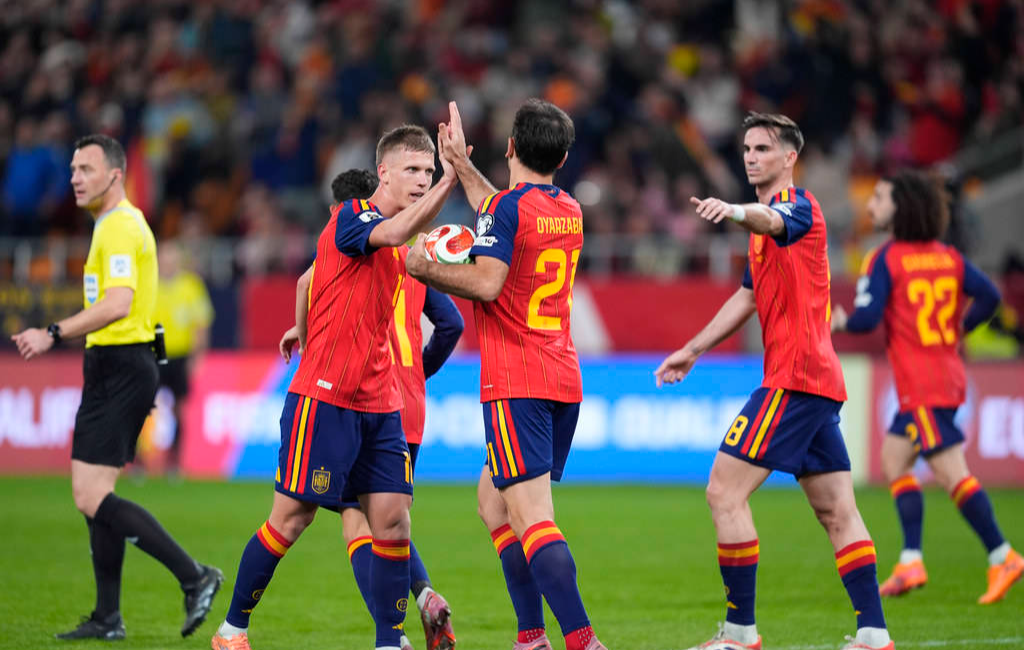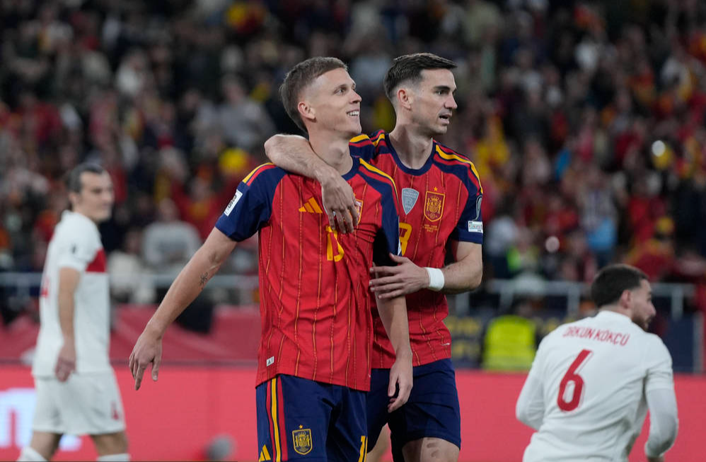 北京时间11月19日凌晨3:45分,世预赛欧洲区小组赛E组第6轮,西班牙在主场对阵土耳其,本场西班牙只要不惨败即可晋级。上半场比赛,奥尔莫为西班牙首开纪录,居尔帮助土耳其扳平,半场结束双方1-1战平;下半场,厄兹詹破门助土耳其反超,奥亚萨瓦尔扳平比分,最终西班牙2-2战平土耳其,西班牙以3分优势获得小组头名,直通世界杯,土耳其以小组第二的身份参加欧洲区附加赛。