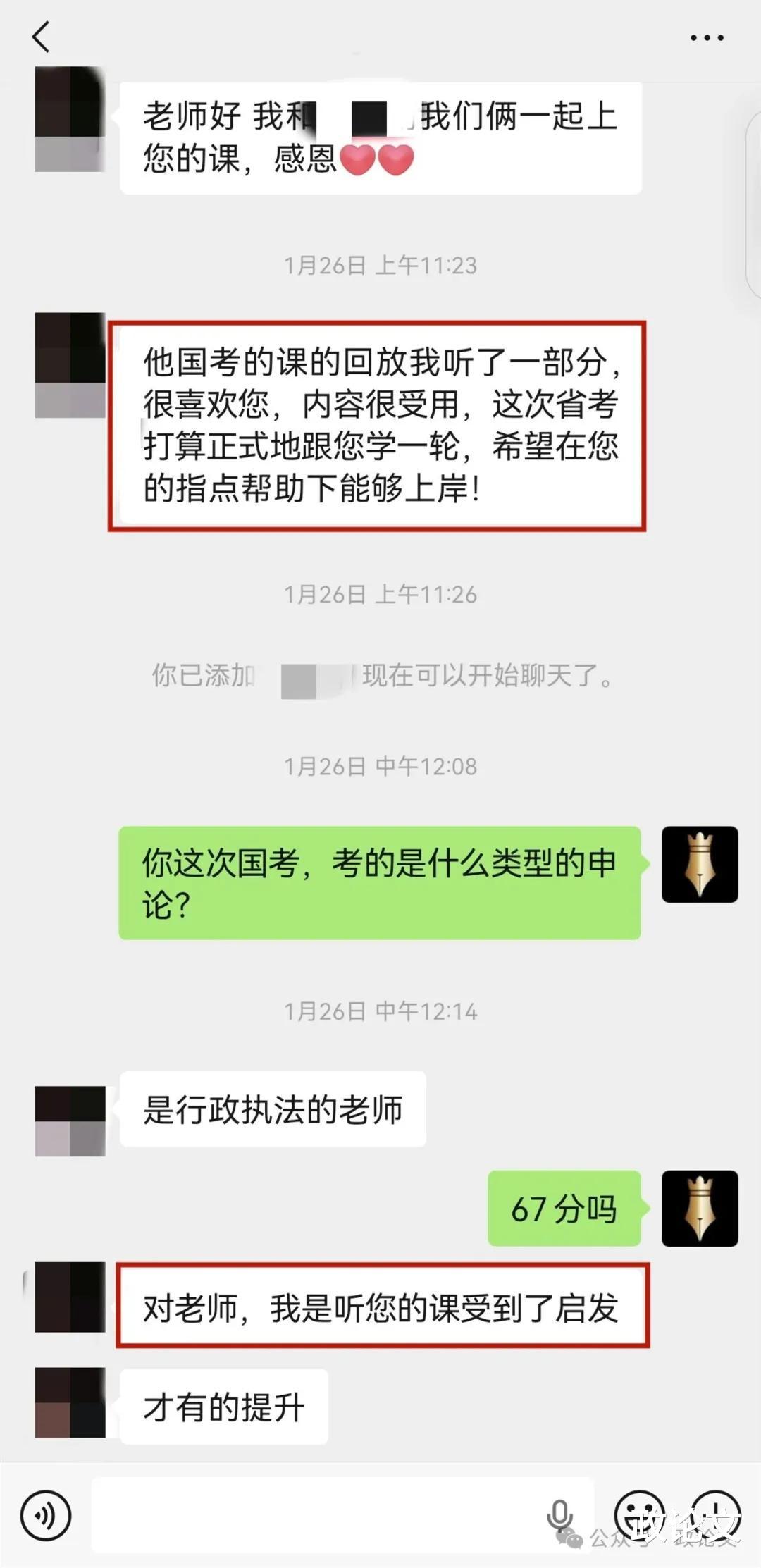 之前,我不知道两个人都在听我的国考课程。但在2026年省考直播课报名时,这位男同学主动告知了我这件事,并主动提出要支付两个人本次省考的学费。