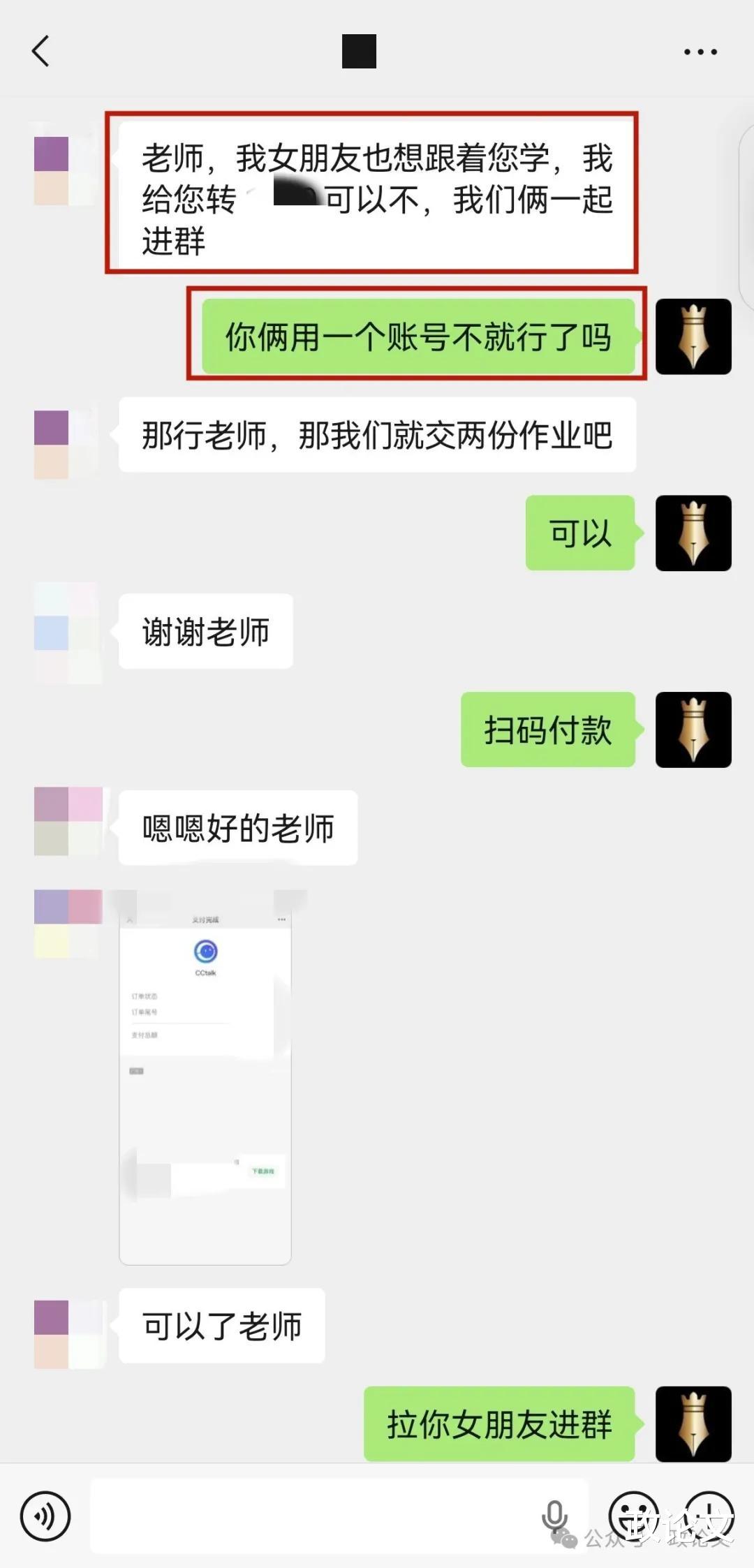 但我告诉他,两个人可以继续用一个账号,不用再单独付费。我多看一份作业,也没有增加多少工作量。
